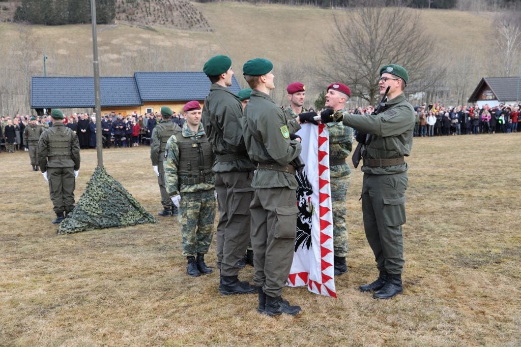 Ein lautes „Ich gelobe, mein Vaterland, die Republik Österreich und sein Volk zu schützen und mit der Waffe zu verteidigen …” schallte kürzlich über den Fußballplatz in der Gemeinde Glödnitz. Angelobt wurden 390 im Jänner und Februar in den Kärntner Garnisonen eingerückte Grundwehrdiener. Das Militärkommando Kärnten und die 7. Jägerbrigade mit dem Villacher Pionierbataillon 1 organisierten in Zusammenarbeit mit der Gemeinde Glödnitz diese Angelobung samt vorgestaffelter Totenehrung beim Kriegerdenkmal.