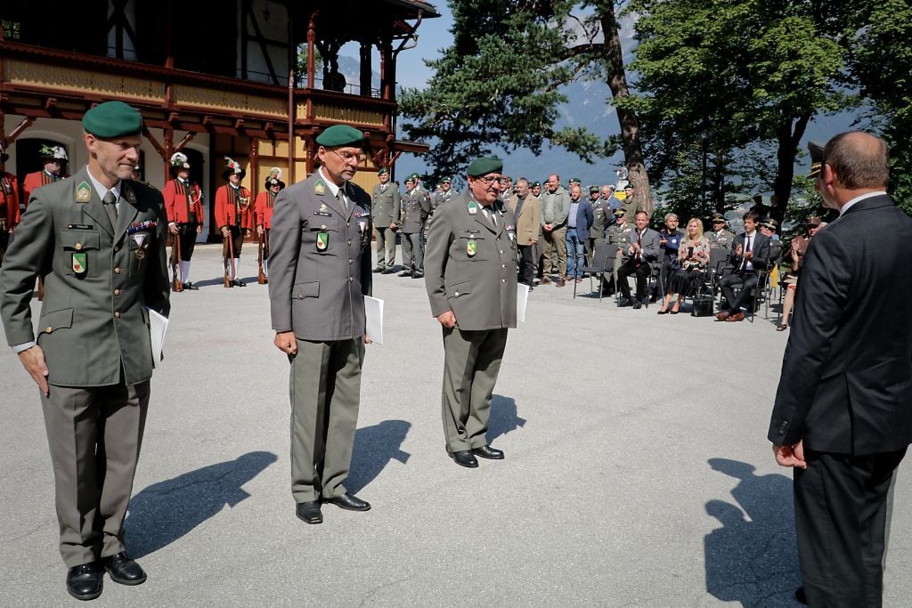 Im Anschluss wurden durch den Militärkommandanten von Tirol und Landeshauptmannstellvertreter Geisler zwei Offiziere und ein Unteroffizier des Militärkommandos Tirol mit der Einsatzmedaille ausgezeichnet.