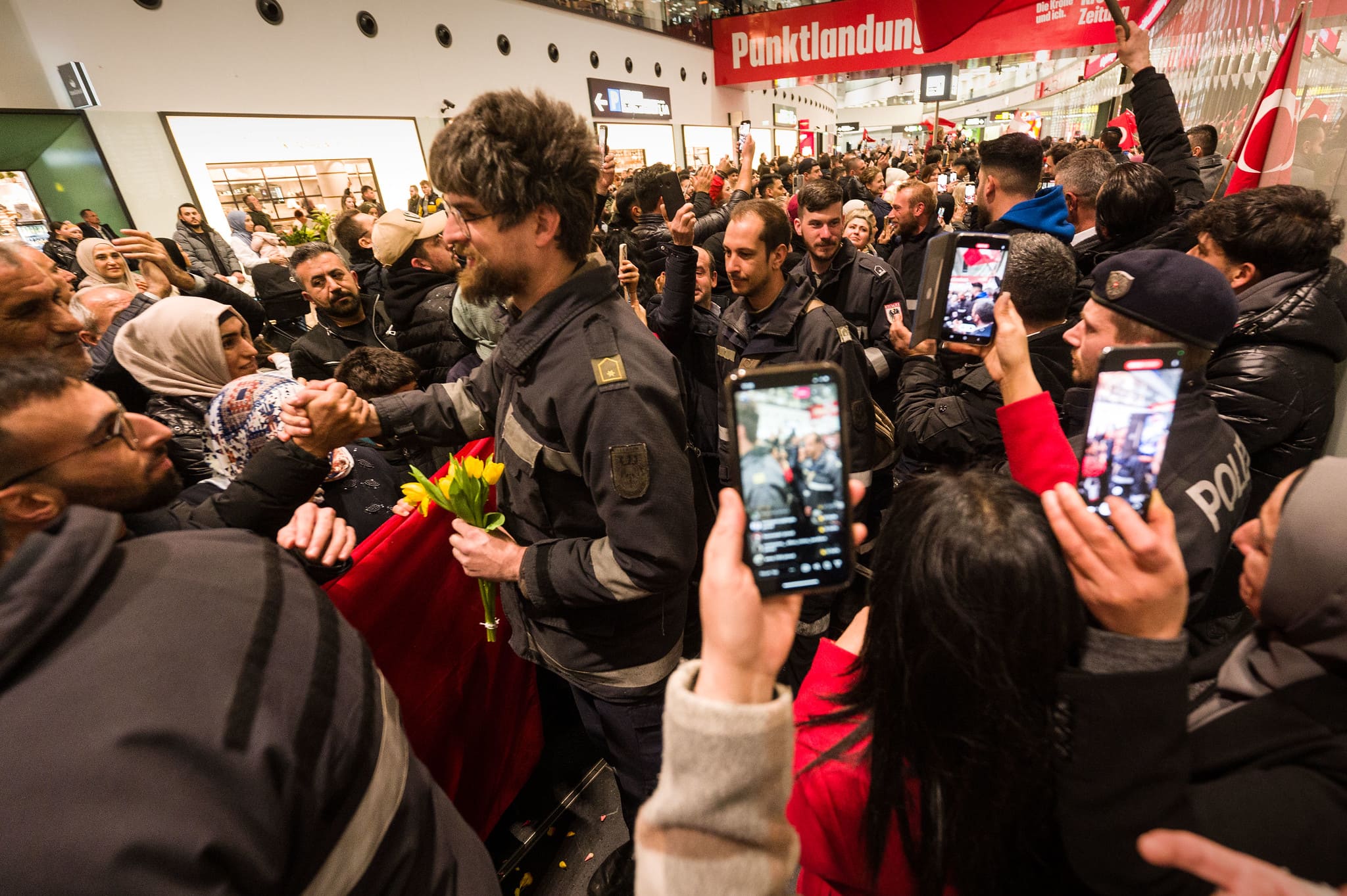 Zahlreiche Mitglieder aus der türkischen Community begrüßten das AFDRU-Kontingent dann in der Ankunftshalle des Flughafens. Dort zogen die Helferinnen und Helfer unter frenetischem Jubel und von „Österreich”-Sprechchören begleitet ein. „Die Hilfe ist besonders schnell gekommen”, sagte Ceyhan, der jedem Mitglied des Teams ein Geschenk überreichte.