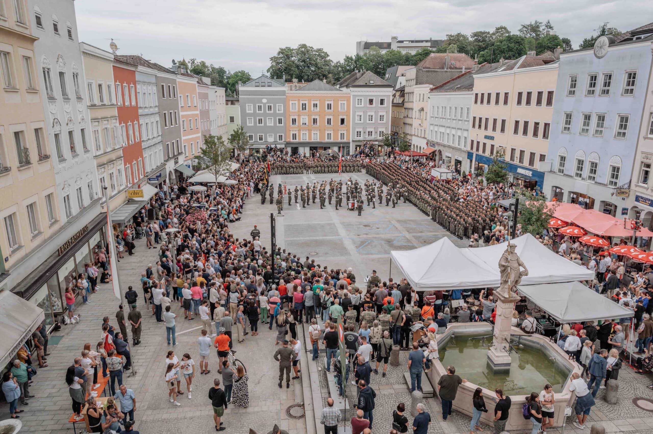 Die Angelobung endete mit der Aufführung des Großen Österreichischen Zapfenstreichs durch die Militärmusik Oberösterreich und dem anschließenden Ausmarsch vom Hauptplatz.