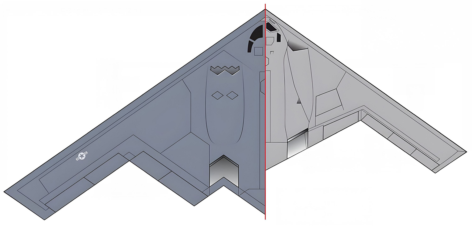 Auf den ersten Blick sehen sich die beiden Tarnkappenbomber frappierend ähnlich – beide sind Unterschall-Nurflügler mit Stealth-Eigenschaften. Doch der B-21 ist deutlich kompakter, leichter und kommt mit nur zwei statt vier Triebwerken aus. Ergebnis: bessere Treibstoffeffizienz, größere Reichweite, vereinfachtes Fahrwerk.