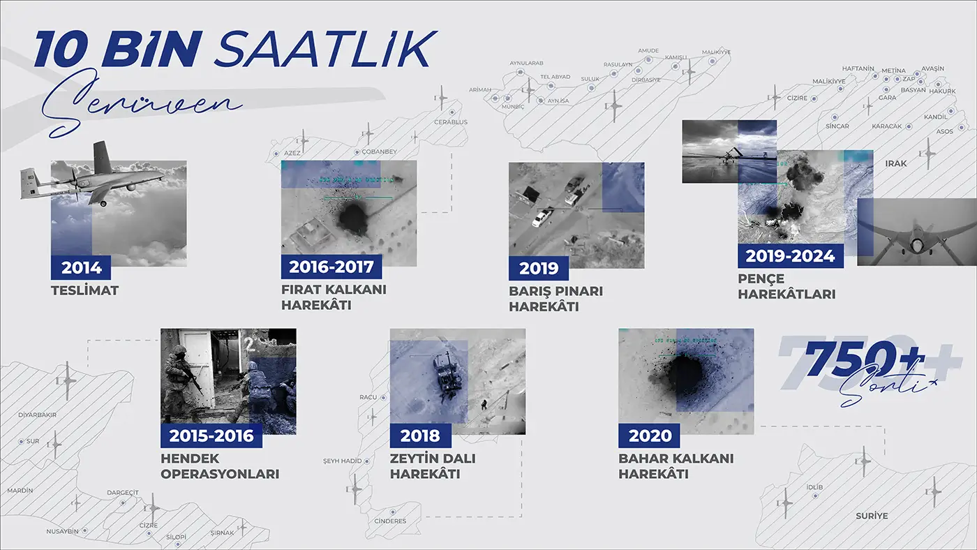 Der Bayraktar TB2 mit der Hecknummer S5, die 2014 nach erfolgreich bestandenen Abnahmetests in den Bestand das Kommandos der türkischen Landstreitkräfte aufgenommen wurde, ist die erste Drohne des Typs, die nach 10.000 Flugstunden ihr Betriebsleben erfolgreich hinter sich gebracht hat und somit ihren aktiven Einsatz beendet. Sie wurde nun feierlich aus der Flotte der türkischen Streitkräfte ausgeschieden.