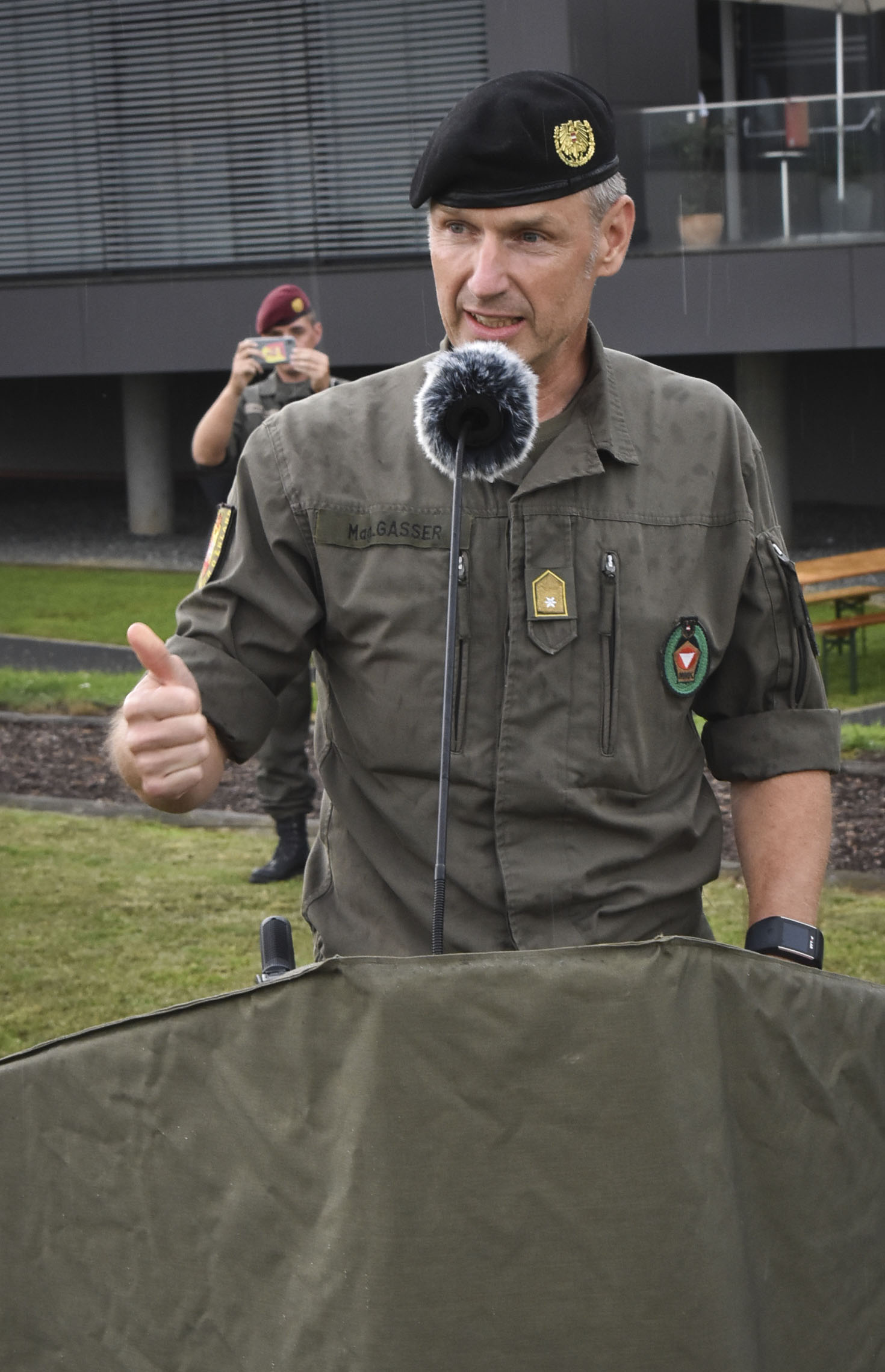 Der Militärkommandant Brigadier Gernot Gasser bedankte sich beim Jägerbataillon 19 für die ausgezeichnete Auftragserfüllung und dankte den Kameraden für den Einsatz. „Sie üben um für den Einsatz bereit zu sein und konnten das jetzt unter Beweis stellen”, richtete der Militärkommandant an die Soldaten und Soldatinnen.