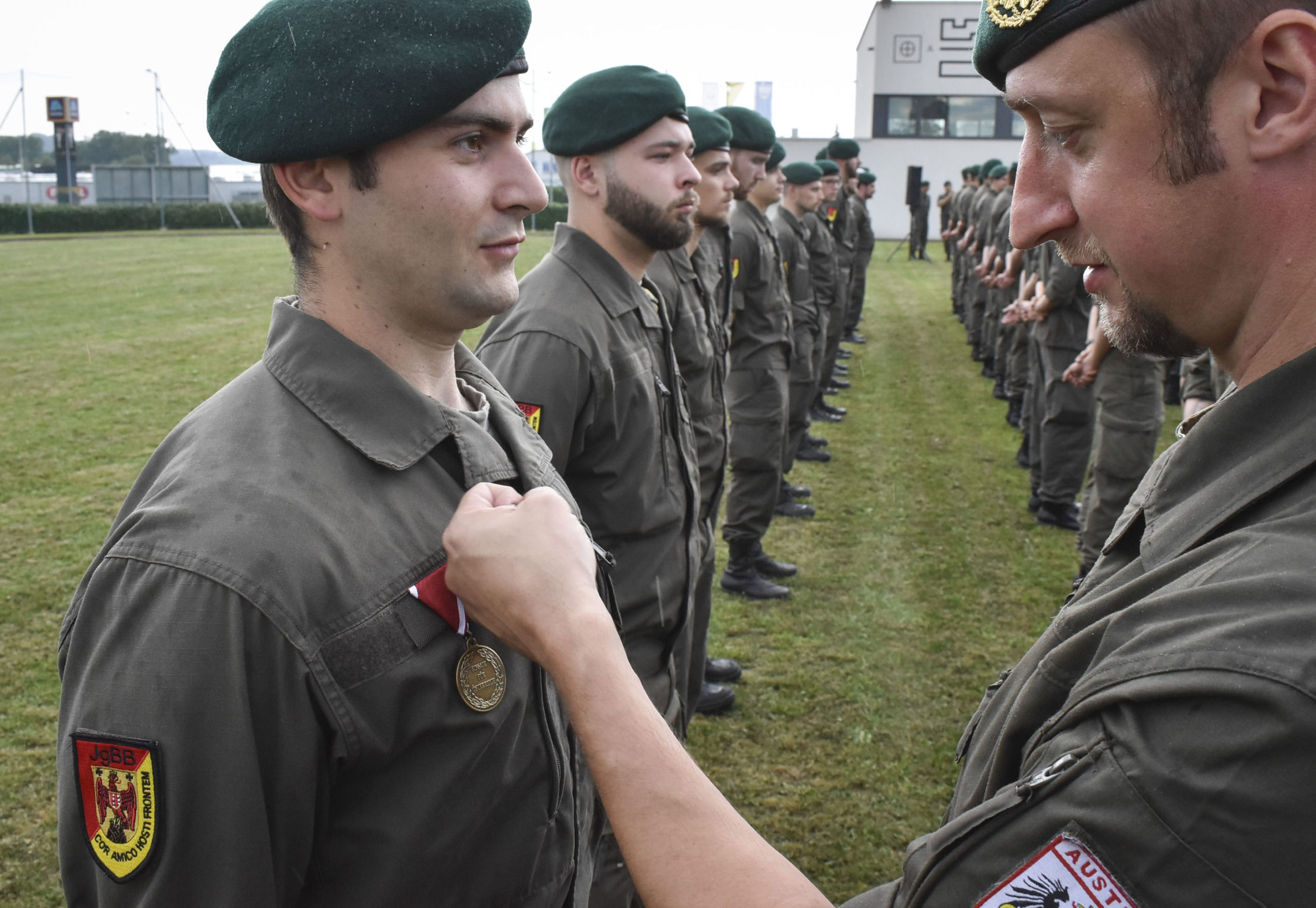 Oberst Thomas Erkinger, Kommandant des Jägerbataillon 19 freut sich wieder über die Rückkehr der Milizsoldaten und bedankte sich für deren Einsatz in den vergangenen Monaten. Die Einsatzmedaille als äußeres Zeichen der Leistungen, in dieser anspruchsvollen Zeit, soll die Soldatinnen und Soldaten an diesen Einsatz erinnern und wird zurecht mit Stolz getragen.