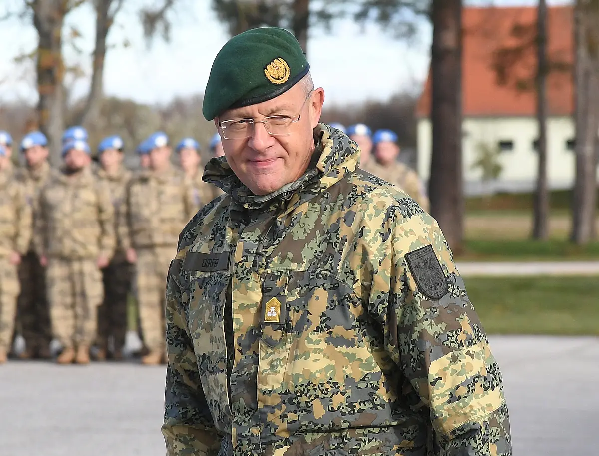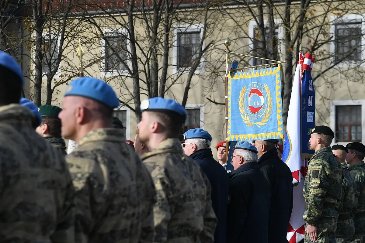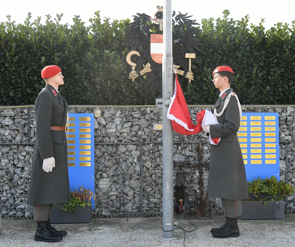 Oberst Wolf begrüßte außerdem Generalleutnant Martin Dorfer unter den Ehrengästen, seines Zeichens Kommandant der Land- und Spezialeinsatzkräfte, und würdigte Dorfer mit den Worten: „Wir sehen und spüren eine sehr klar gezeigte und umsichtige Führungskompetenz.” Ebenfalls anwesend war Generalmajor i.R. Nikolaus Egger, Präsident der Vereinigung Österreichischer Peacekeeper, die auch mit einer eigenen Standarte gleich neben dem zu verabschiedenden Kontingent angetreten waren. Ein Brückenschlag zwischen ehemaligen und aktiven österreichischen Blauhelm-Soldaten.
