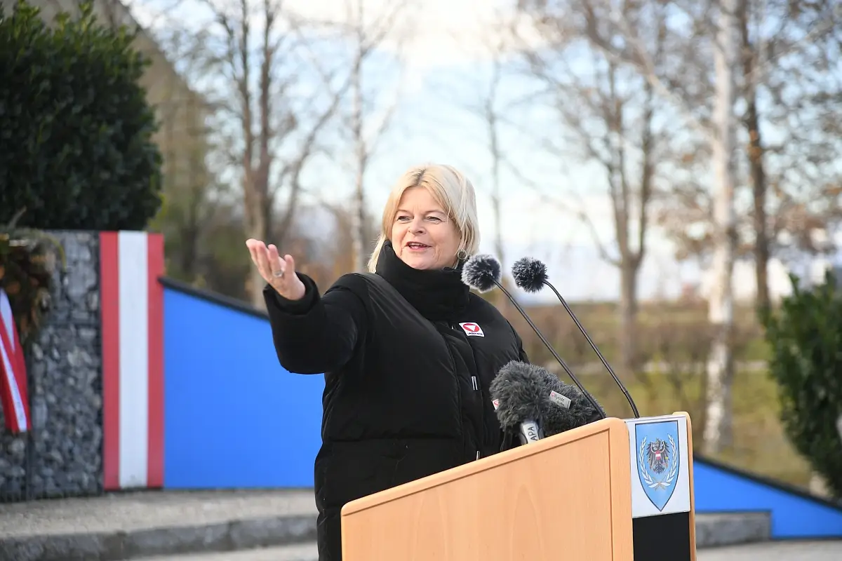 Oberst Karl Wolf, Kommandant der Auslandseinsatzbasis, betonte ebenfalls die herausfordernde Situation und unterstrich in seiner Ansprache, welche umfassende Einsatzvorbereitung das österreichische Kontingent durchlaufen habe: „Ich bedanke mich bei allen Dienststellen, die mitgewirkt haben, besonders beim Ausbildungsleiter, Major Armin Kaufmann.” Und in Richtung der Frau Bundesminister sagte Oberst Wolf: „Wir bedanken uns für Ihre Anwesenheit bei dieser doch sehr kurzfristig einberufenen Verabschiedung. Es gilt Ihnen auch ein besonderer Dank für das intensive Vorantreiben der ,Mission Vorwärts’ , für Ihre Wertschätzung und Fürsorge für die Truppe im In- und Ausland und ganz besonders für Ihre Nähe zur Basis des Bundesheeres.”
