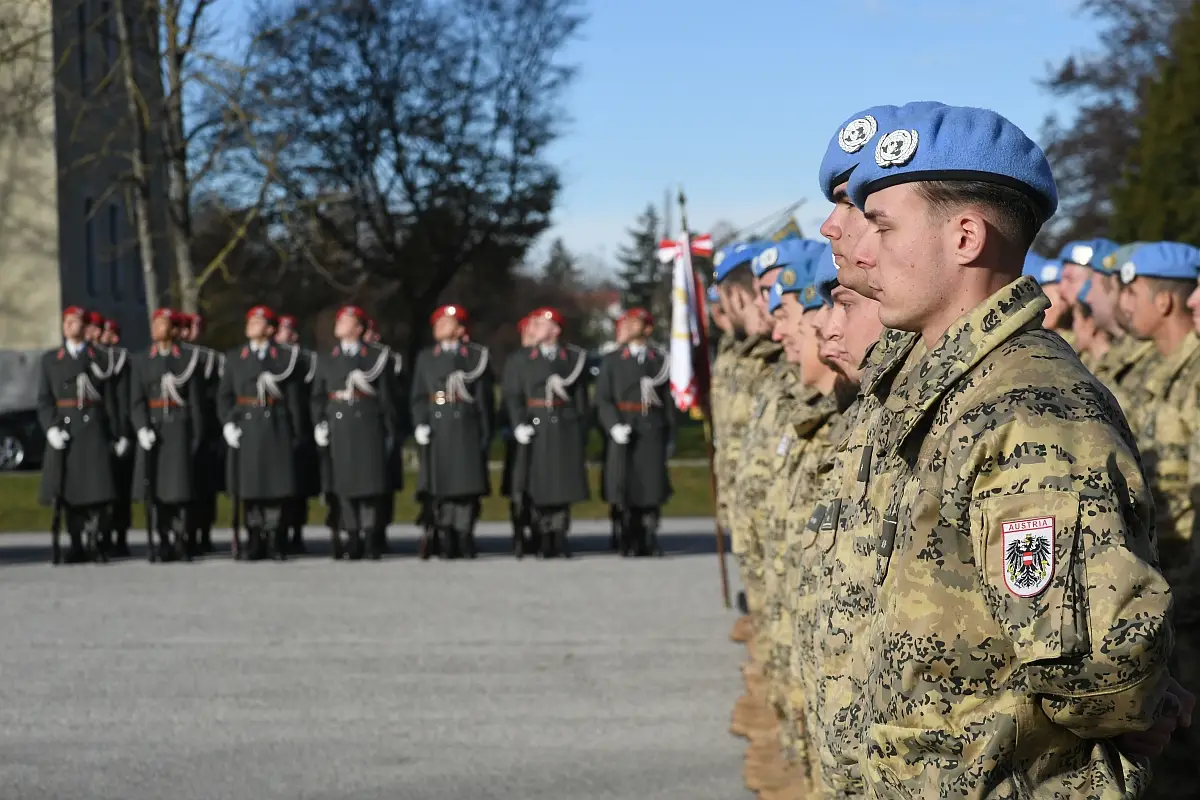 Strahlend blauer Himmel, etwas Wind, 9 Grad in Götzendorf. Nicht zu kalt, nicht zu heiß. Die Stimmung auf dem Exerzierplatz, auf dem die Truppe angetreten ist: militärisch formell, kameradschaftlich. Und trotzdem lag auch etwas Anspannung in der Luft. Sie war den 81 Soldaten, darunter zehn Frauen, die nächste Woche zu ihrem friedenssichernden Einsatz in den Libanon aufbrechen, durchaus auch ins Gesicht geschrieben. Denn die Situation vor Ort ist nicht ungefährlich.
