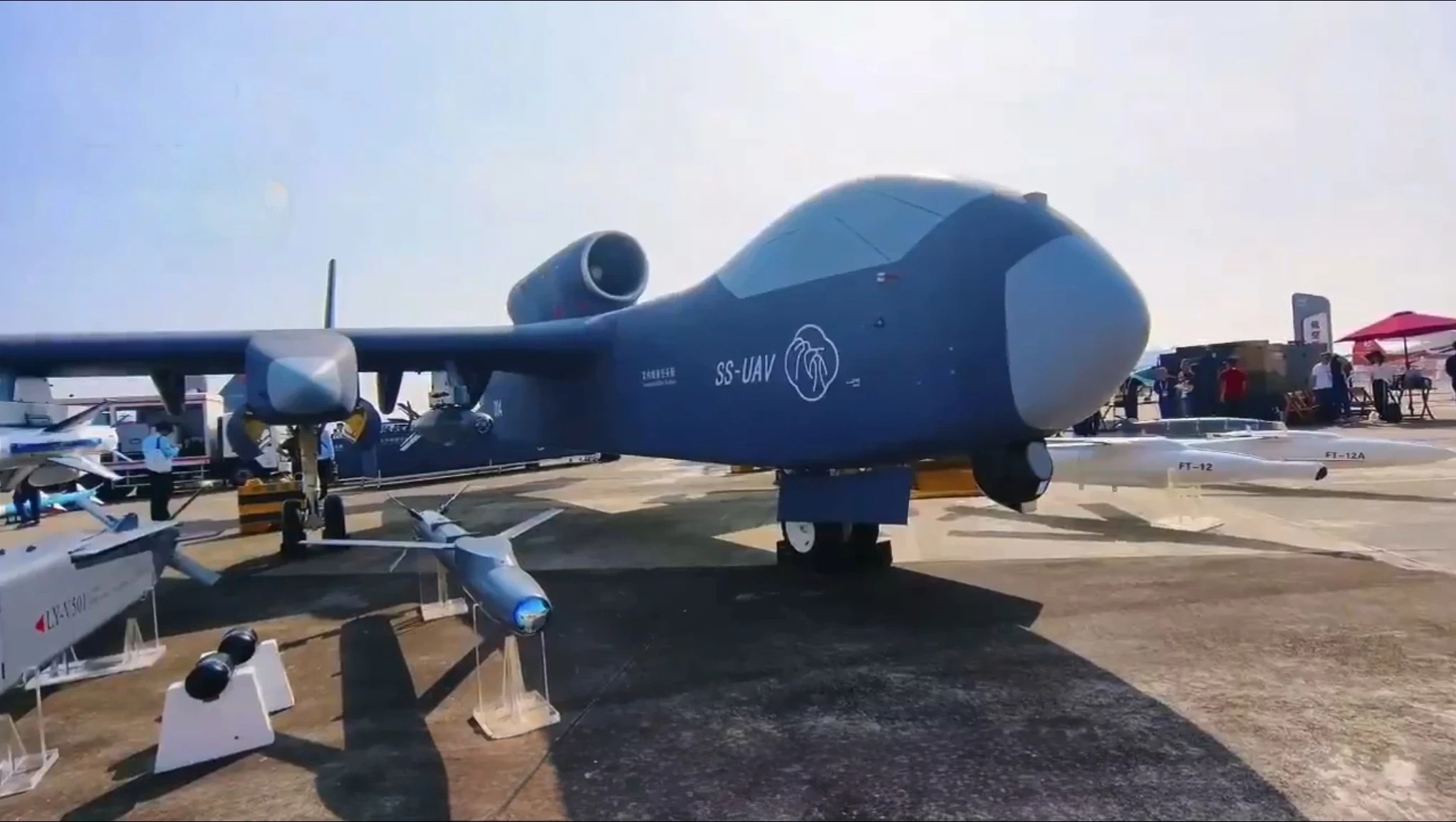 Mit der „SS-UAV” präsentiert China ein fliegendes Drohnen-Mutterschiff der Superlative. Das 15 Tonnen schwere System soll nicht nur Raketen tragen, sondern auch mehr als 100 Kleindrohnen im Flug starten können – ein potenzielles Erstschlagsinstrument, das für den Einsatz weit vor Beginn eines Konflikts konzipiert sein dürfte.