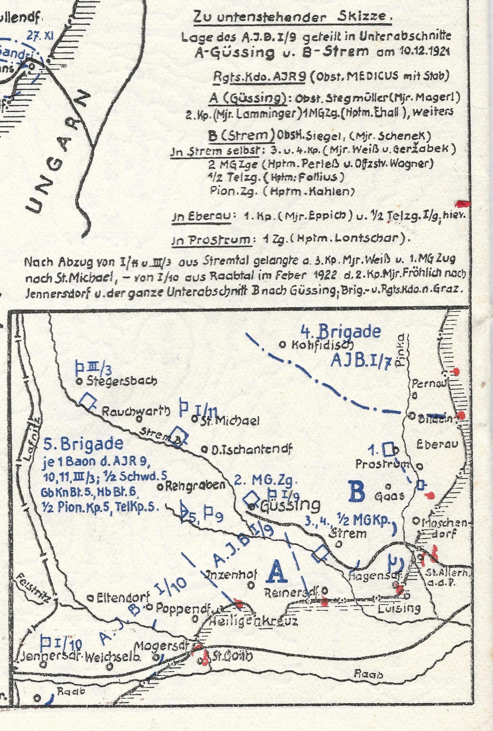 In Teil 1 unserer Serie zur Burgenlandeinsatz des Bundesheeres 1921/22 aus Sicht des Alpenjägerregiments Nr. 9 ging es um die Alarmierung (siehe hier) und in Teil 2 um die Verlegung der Truppen an das niederösterreichisch-burgenländische sowie steirisch-burgenländische Grenzgebiet. Im dritten Teil berichteten wir über den Unfall von Pinggau und die Einsätze im November. Im vierten – und letzten – Teil geht es nun um den Einmarsch ins Burgenland und den erneuten Grenzschutz.