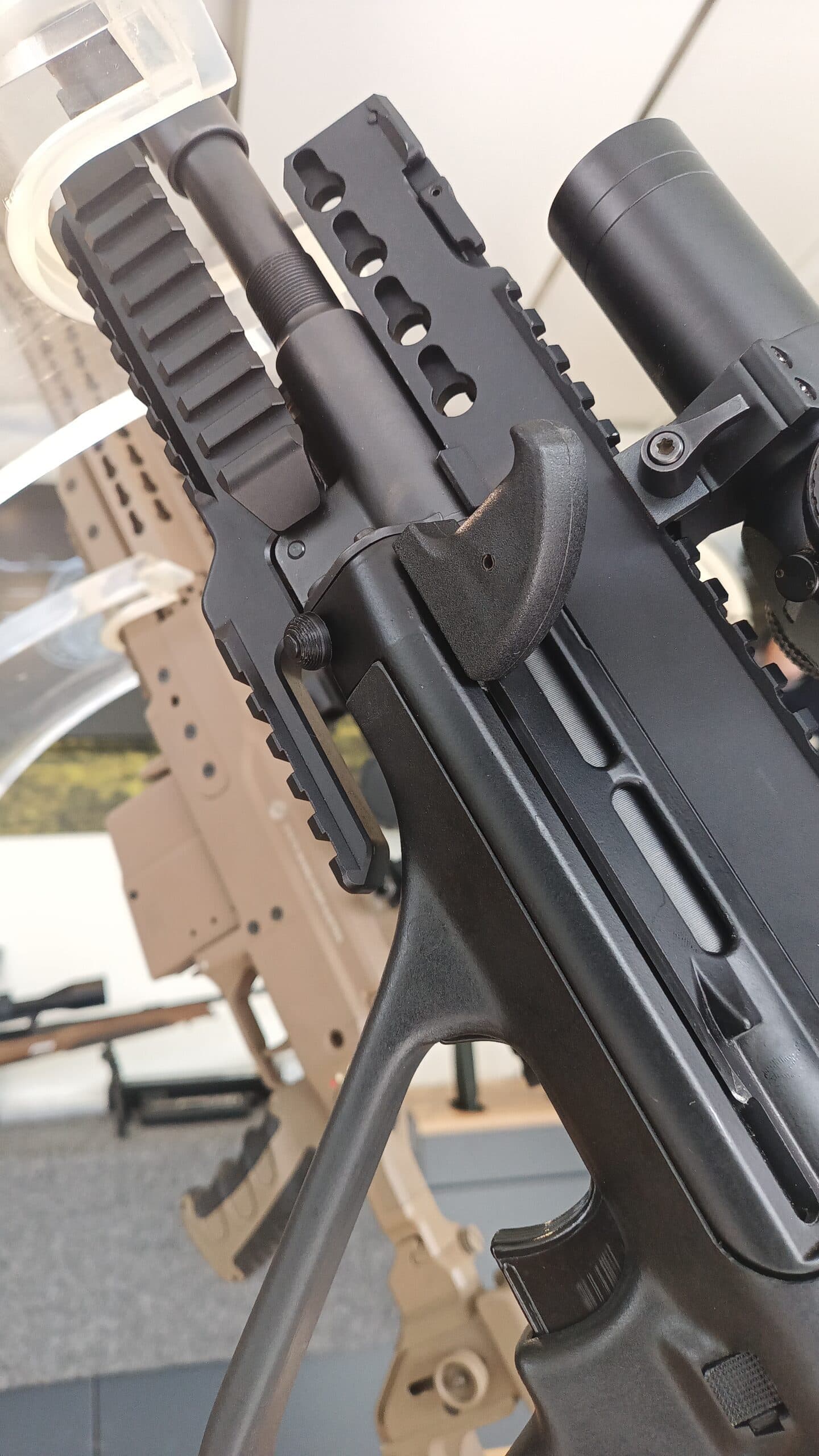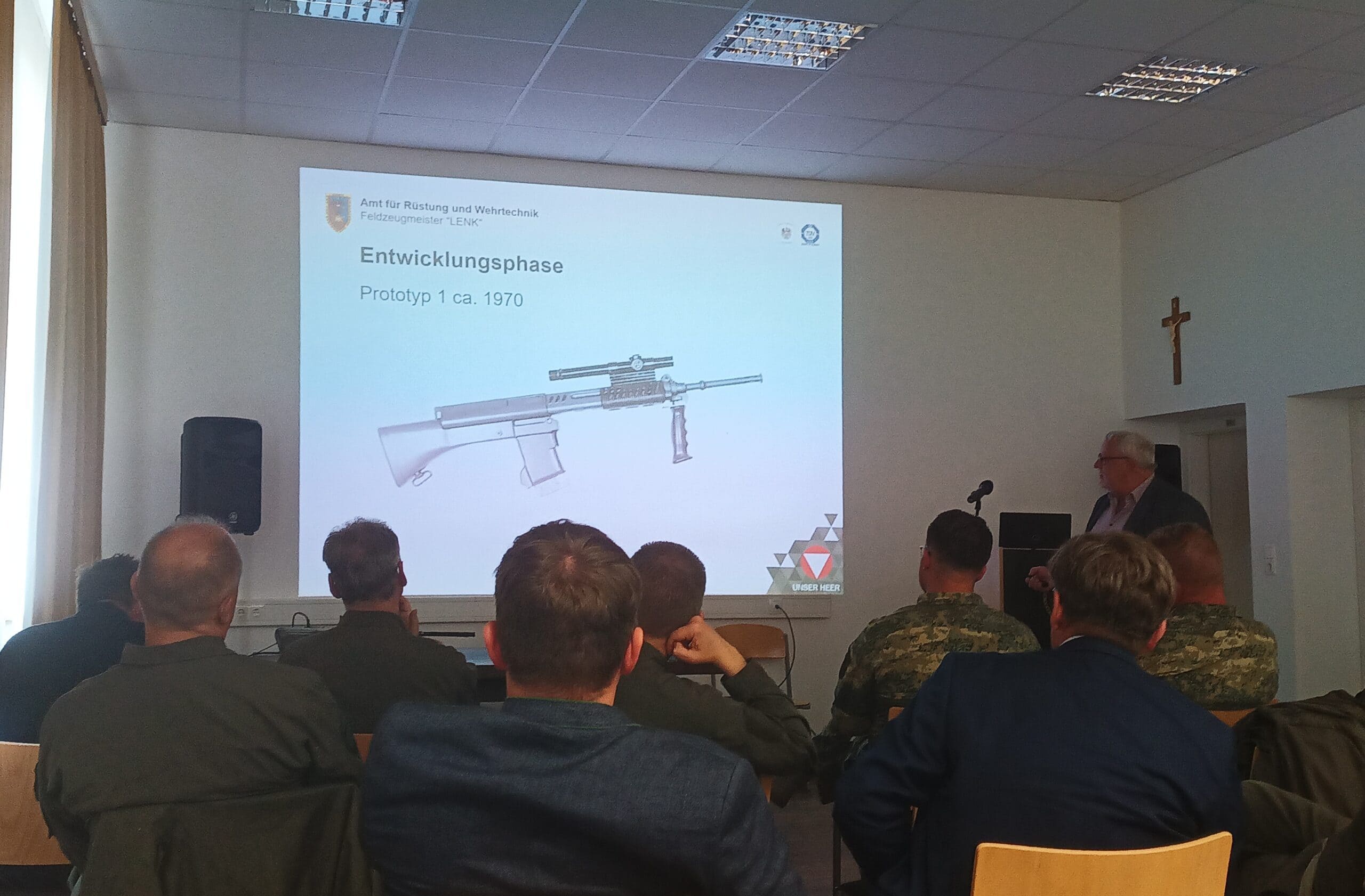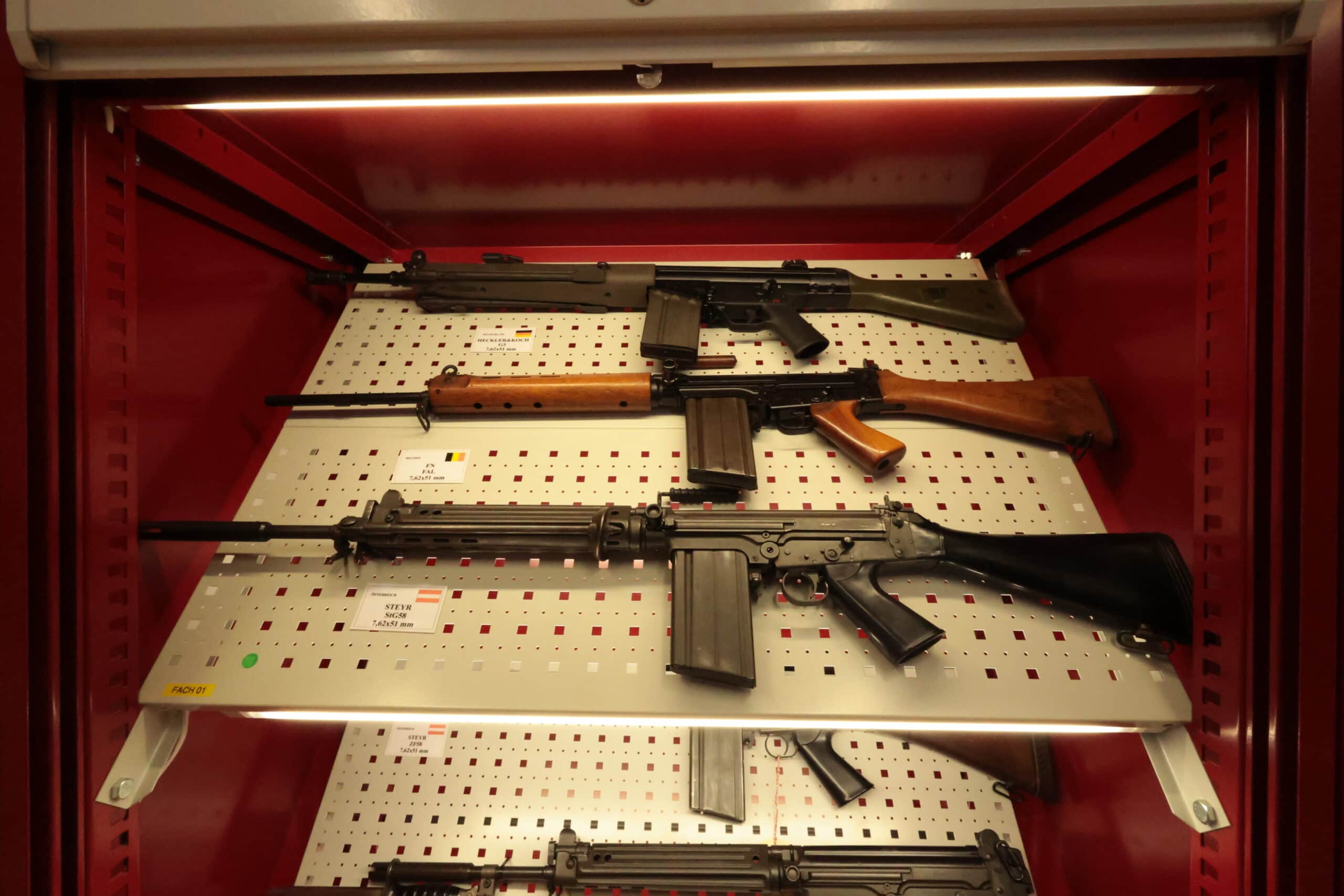 Außerdem konnten Steyr-AUG-Prototypen sowie ausländische Kurz- und Langwaffen in der für gewöhnlich nicht öffentlich zugänglichen Referenzwaffensammlung am Schießversuchsplatz in Felixdorf hautnah betrachtet werden. Darunter befinden sich neben einigen historischen Waffen nicht minder seltene Versionen des StG 77 Kdo für das Jagdkommando (-> Vorwärts zu den Jagdkommando-Wurzeln).