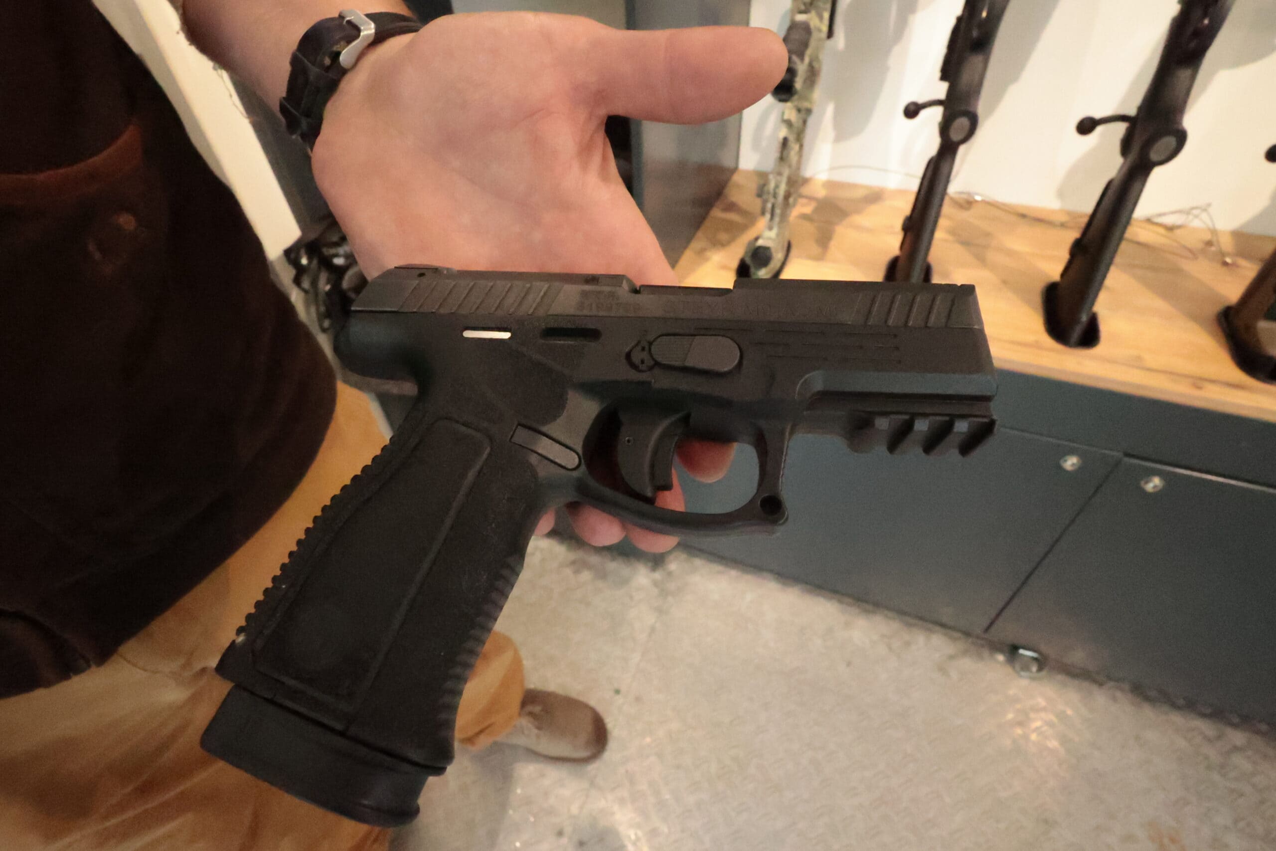 Den Schritt in die Gegenwart schaffte die Ausstellung aktueller Modelle von Steyr Arms. Umgeben vom Pandur der General Dynamics European Land Systems-Steyr waren im mobilen Stand von Steyr Arms neben Jagdgewehren auch aktuelle Versionen des Steyr AUG-Z A3 auch das schon von so einigen heiß ersehnte Steyr DMR 762 mit dabei. Das DMR-Gewehr wird für den Herbst 2024 erwartet. Auch die neue Version der Steyr Pistole A2 MF war in drei Größen vertreten.