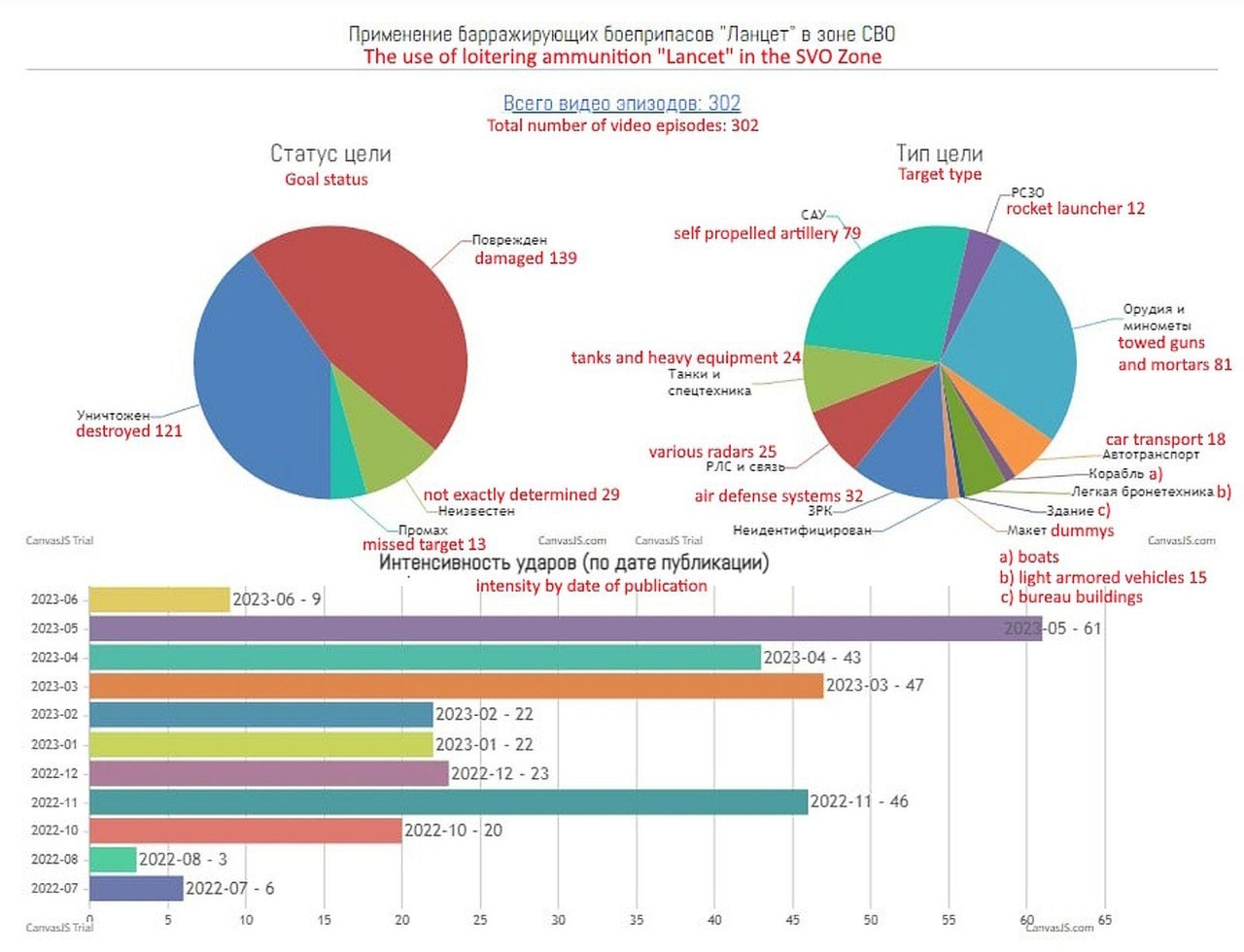Die vorliegenden Zahlen lassen den Schluss zu, dass bisher nicht mehr als eine Handvoll Lancet-Teams auf russischer Seite im Einsatz ist. Diese Experten schmerzen die Ukrainer aber sehr, denn sie wählen ihre Ziele mit Bedacht und treffen praktisch ausschließlich ukrainische Hochwert-Systeme, die nicht leicht zu ersetzen sind.