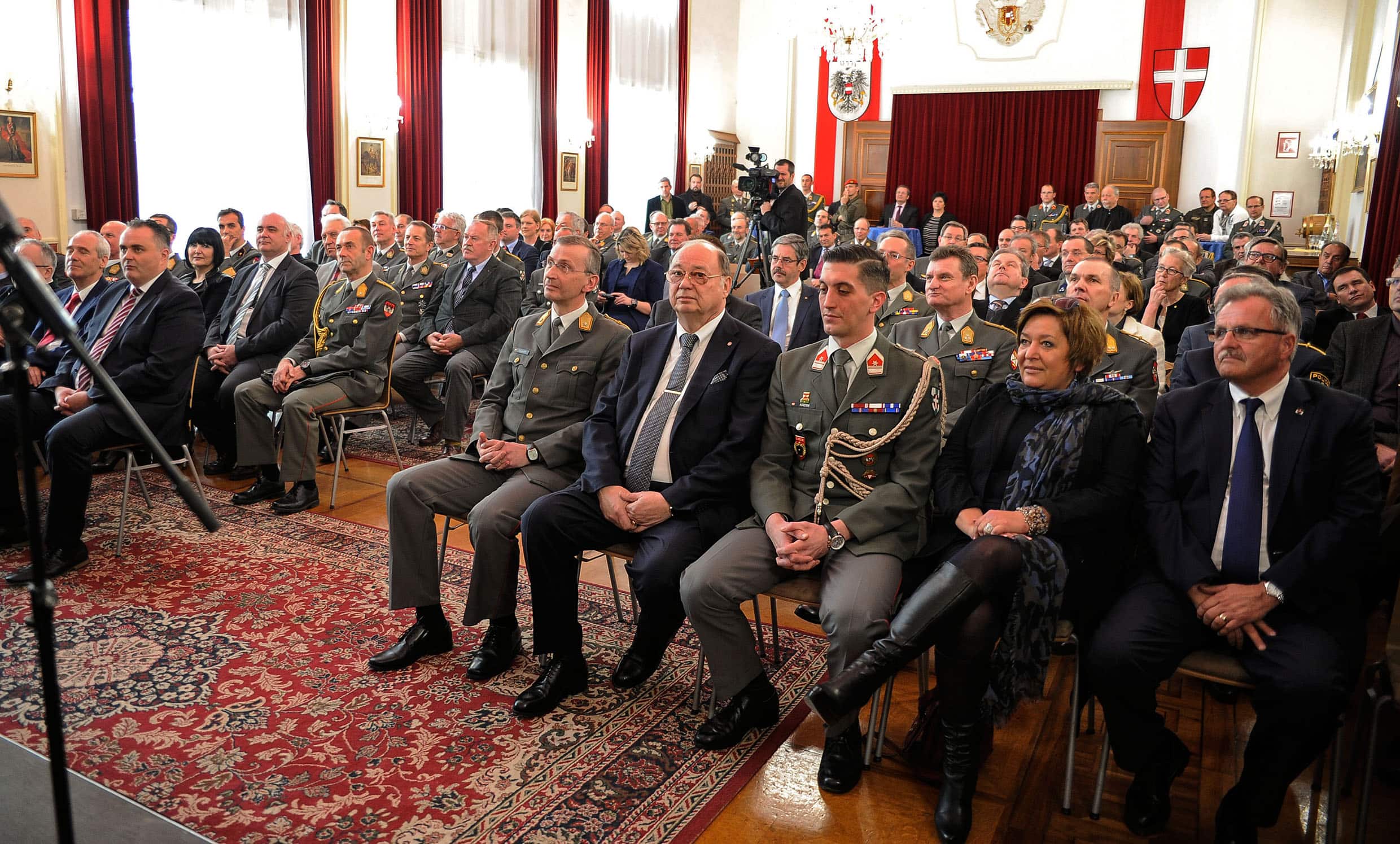 Zu Gast bei der Veranstaltung waren Verteidigungsminister Hans Peter Doskozil, Landeshauptmann-Stellvertreterin von Niederösterreich Karin Renner, Milizbeauftragter Brigadier Erwin Hameseder und Militärkommandant von Wien Brigadier Kurt Wagner.