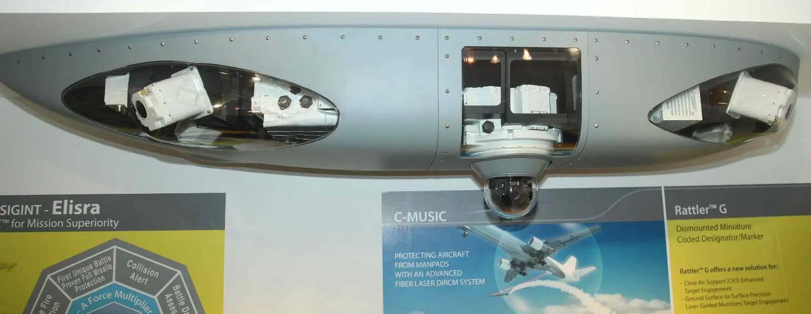 Die hochmoderne EW- und DIRCM-Selbstschutz-Suite, die auf beiden Plattformen installiert werden soll, bietet „umfassende Verteidigungsfähigkeiten durch die autonome Erkennung, Analyse und Abwehr eines breiten Spektrums an Bedrohungen”, wie es von Seiten des Herstellers heißt. Die Suite umfasst einen fortschrittlichen digitalen Radarwarnempfänger, ein IR-Raketenwarnsystem (MWS), ein Laserwarnsystem (LWS), ein Countermeasure Dispenser System (CMDS) sowie das DIRCM-System der Music-Familie von Elbit.