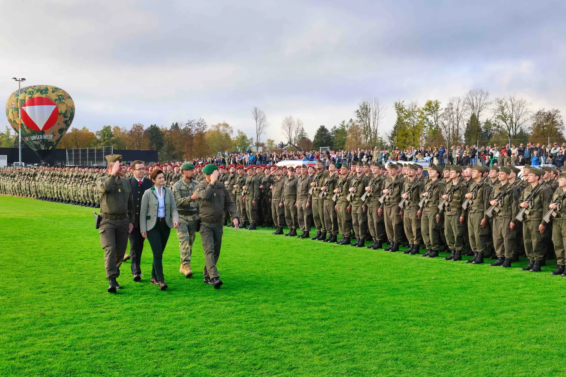 On National Day, 700 recruits from Salzburg and Upper Austria took the oath of allegiance to the Republic of Austria on the sports field of the Schwarzenberg barracks. The swearing-in ceremony took place with soldiers from Pioneer Battalion 2, Jäger Battalion 8, Command Support Battalion 2, the Radar Battalion, the Mountain Combat Center and Armoured Staff Battalion 4.