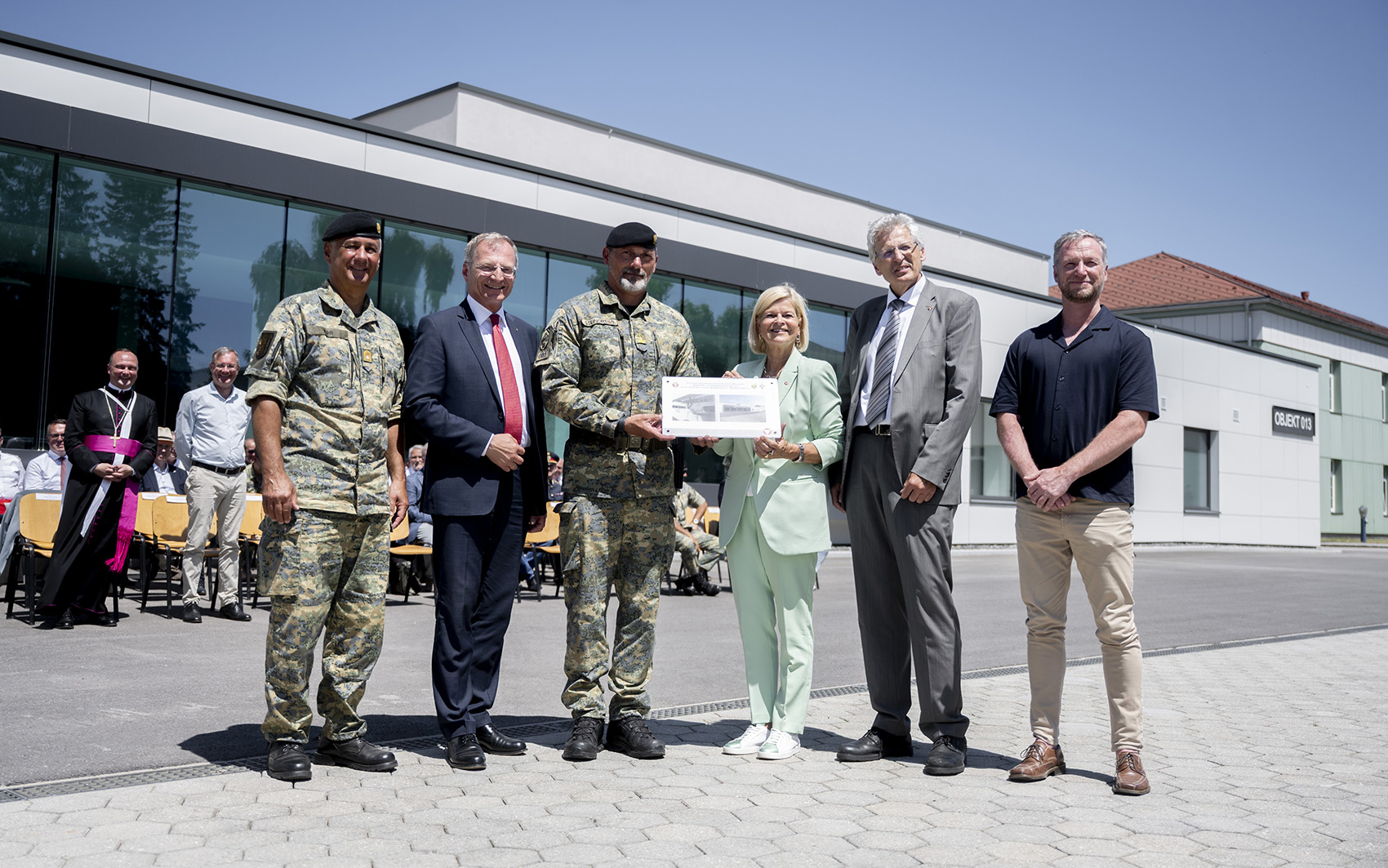 On Tuesday, Defense Minister Klaudia Tanner opened the new command and service building at Panzergrenadierbataillon 13 in Ried. The Governor of Upper Austria, Thomas Stelzer, the Mayor of Ried, Bernhard Zwielehner, the general planner from Büro Weißmann and the Director of Army Real Estate, Hofrat Johannes Sailer, were present at the handover ceremony. The ground-breaking ceremony for a railway siding was then held.
