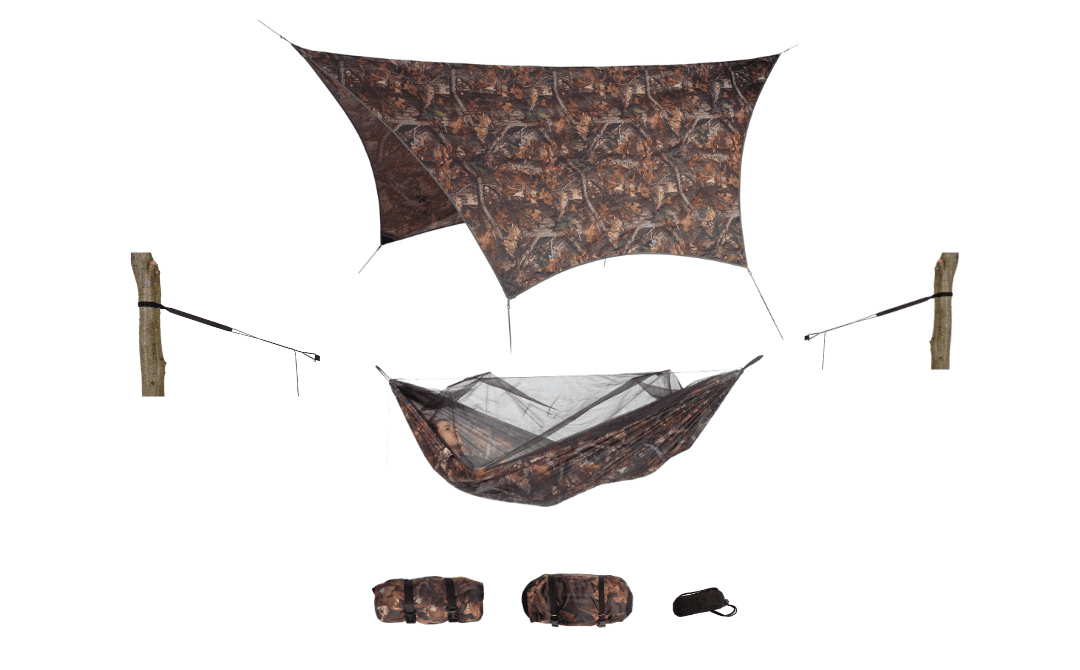 The patented spreader bars allow the sewn-on mosquito net to be stretched to create a large interior space. Thanks to the permanently installed, length-adjustable mosquito net suspension (Ridgeline), the mosquito traveler forest hammock can be set up and taken down particularly quickly. The forest look combines a pattern of leaves, trees and the typical colors of the forest. This allows the hammock to blend unobtrusively into the background. The hammock comes with a waterproof Traveller Tarp forest, which can also be used on the ground without the hammock, and an ultra-light Adventure Rope set with extra-wide straps to protect trees. https://www.youtube.com/watch?v=pznPXmuvRGU&t=168s If you want to use the hammock’s mosquito net on the ground, simply attach two walking poles or longer branches to the ends of the hammock. Amazonas Ultra-Light is a German hammock manufacturer from near Munich that has been known for its ultra-light and compact wild camping equipment for over 25 years. https://www.youtube.com/watch?v=mudx-Ey3OqQ&t=1s