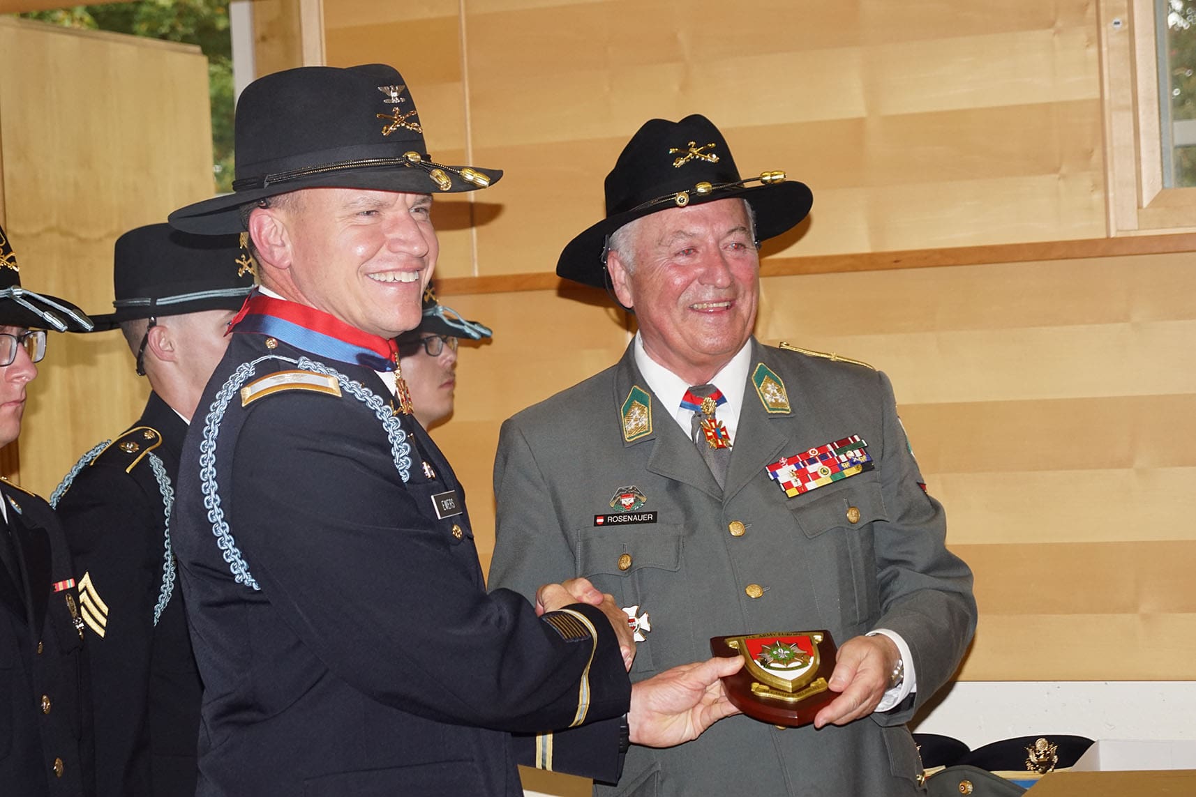 The American guests were visibly impressed by the musical quality of the Vöcklabruck town band. The band not only played a snappy Radetzky march, but also the jauntily performed US national march “Stars and Stripes”, which must have caught the ears of our army representatives, including not only Alfred Steingreß, the head of the Rieder Panzergrenadierbataillon 13, but also Jörg Loidolt, the head of the Welser Panzerbataillon 14. At the end of the ceremony there was a shower of Radetzky medals, also for the American visitors, above all the US ambassador, who was in Upper Austria for the first time and thanked for the friendly reception. Colonel Rosenauer was also presented with a uniform hat of the cavalry regiment and a regimental badge by Colonel Joseph Ewers. The uniforms of the American guests were generally well received. “Smartly dressed US soldiers,” said Barthou, praising the garb of the “Strikers”. “Today it has become fashionable in the world to demonize the Americans,” he mused, “but we must not forget that we also owe them a lot.”