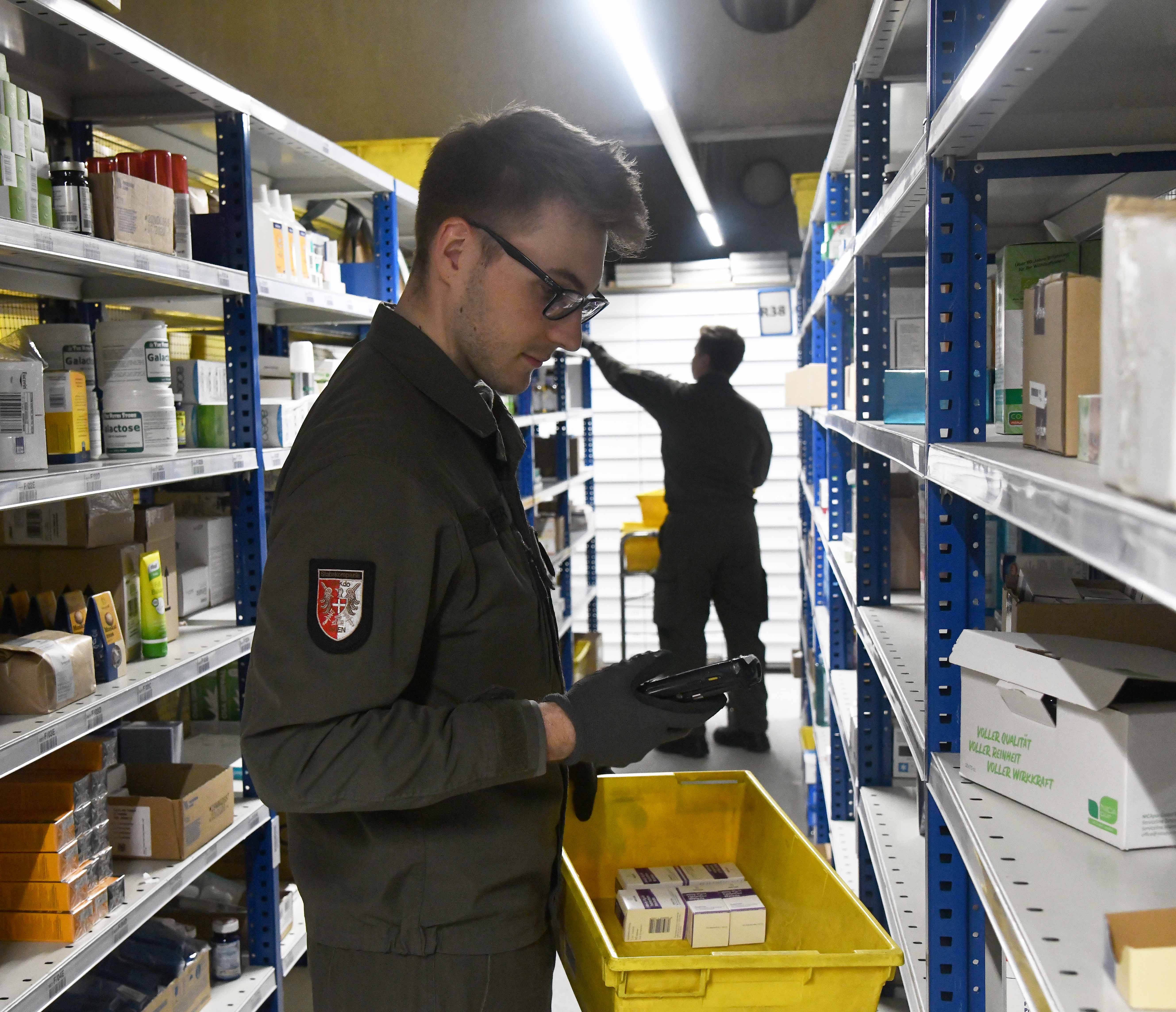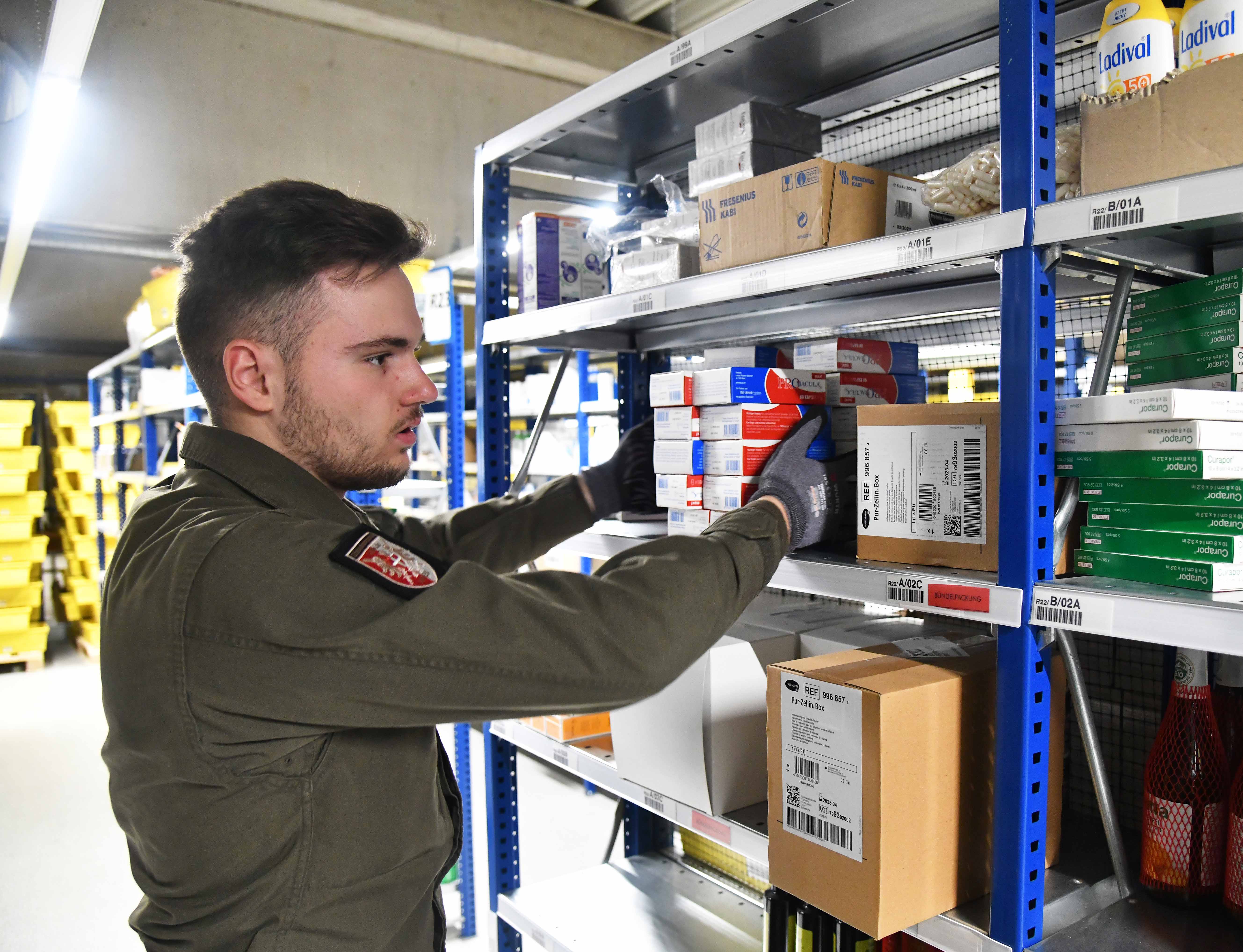 The current Covid-19 situation is causing the population to buy more food and pharmaceutical products. Soldiers from the Vienna Military Command are helping to strengthen the supply chains between wholesale warehouses and local stores: since Thursday evening, twelve construction pioneers have been working for a major pharmaceutical company in wholesalers’ warehouses.