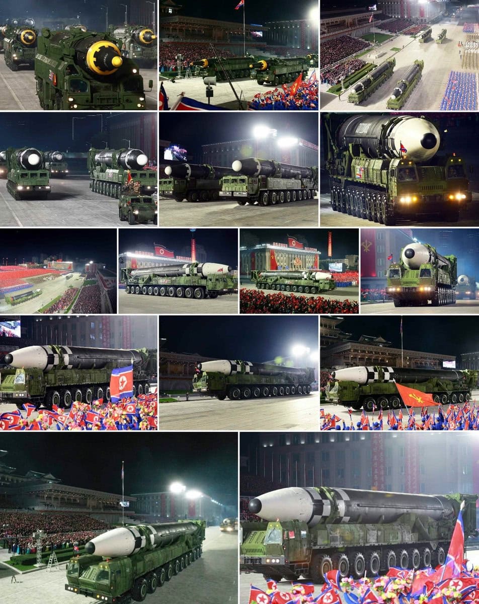 Meanwhile, also yesterday, North Korea’s head of state Kim Jong-un celebrated the 75th anniversary of the reign of “his” Communist Party of North Korea with an unusual night military parade. Among other things, a new, even larger, indeed the largest intercontinental ballistic missile (ICBM) to date, 24 meters long and 2.5 meters in diameter, paraded past on an – also a first – eleven-axle vehicle. If this is a liquid propellant weapon, the dimensions would indicate almost 100 tons of propellant. In his speech, Kim apologized to his people because he could not offer them the standard of living and well-being that they should have everywhere – and here he himself mentioned the UN sanctions. His solution: even more investment in the army! After all, the armed forces are the guarantor of greater security and well-being!