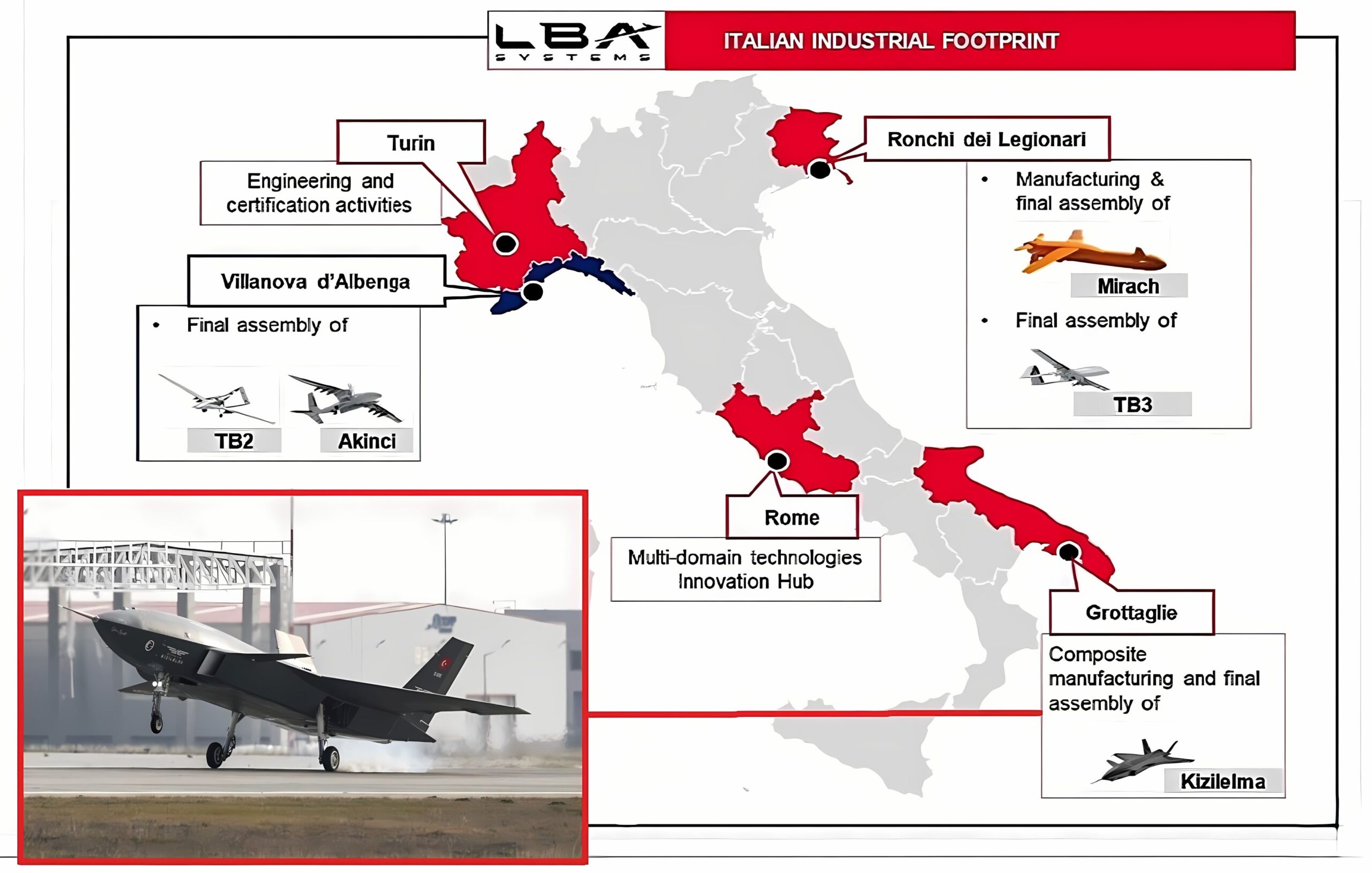 Headquartered in Italy and with a parity structure, LBA Systems will combine Baykar’s platforms with Leonardo’s extensive experience in European certifications, payloads and integrated systems. The entire life cycle of UAS will be covered: from design and development to production and maintenance.