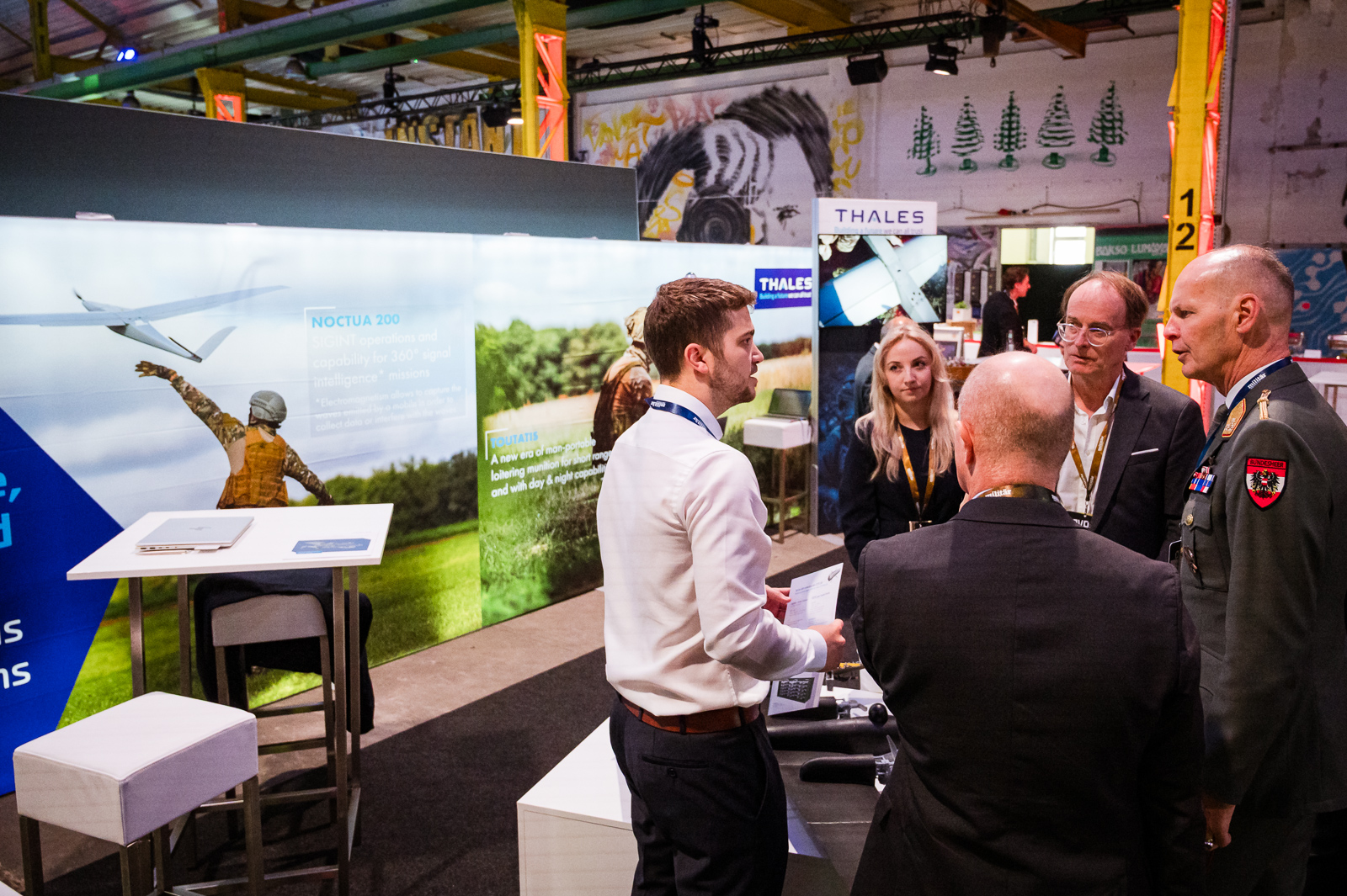 On the exhibition area, Aaronia, Accurision, AIR6 Systems, Airlabs AustriaAustrian Institute of Technology, Alphacam, Beeta Technologies, Belassi, Counter Drone Technology/MyDefence, Destinus, Drei Bond GmbH, Diehl, Edge Group with Halcon, FH Wiener Neustadt, Frequentis, General AtomicsGlobe Flight, HensoldtHybrid Aerospace, IABG, IAV, Intec, Joanneum Research, Lockheed MartinLuftkraft Technologies, the Austrian Militia Association, Moodro Tech, ODM, Pankl, Pidso, Prirevo, Quantum SystemsRecon Europe, RheinmetallSafran, SchiebelSecuriton, Stark Defense, Strategy&, Tasmanian Tiger, Thales, the Theresian Military Academy, Trivion, TRL Drones, TTTech, Walaris, Will-Burt Germany and the Kyivskyi Alliance presented their latest developments.