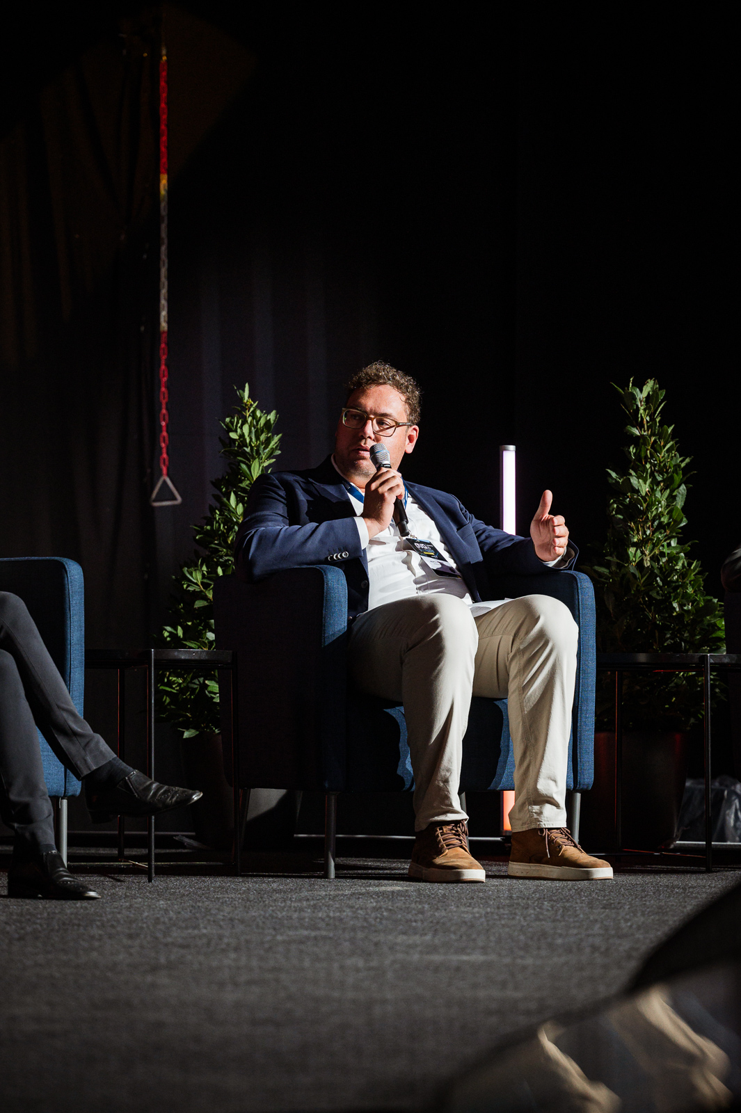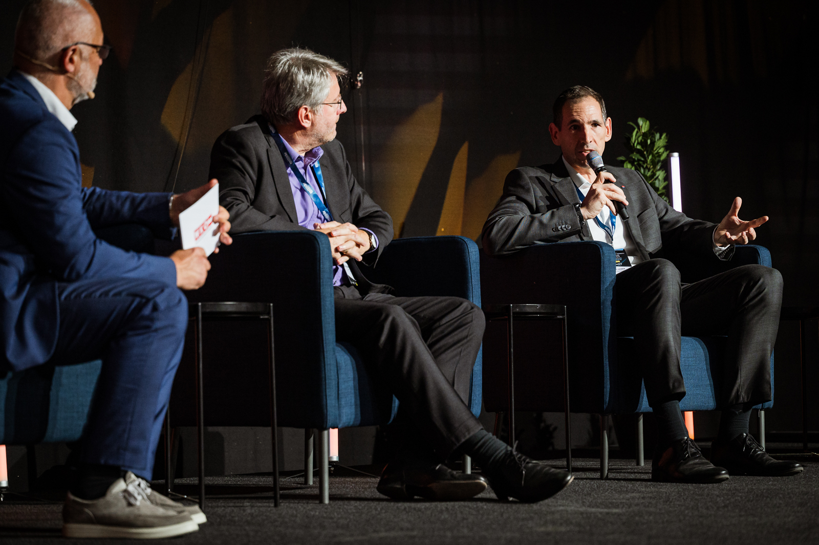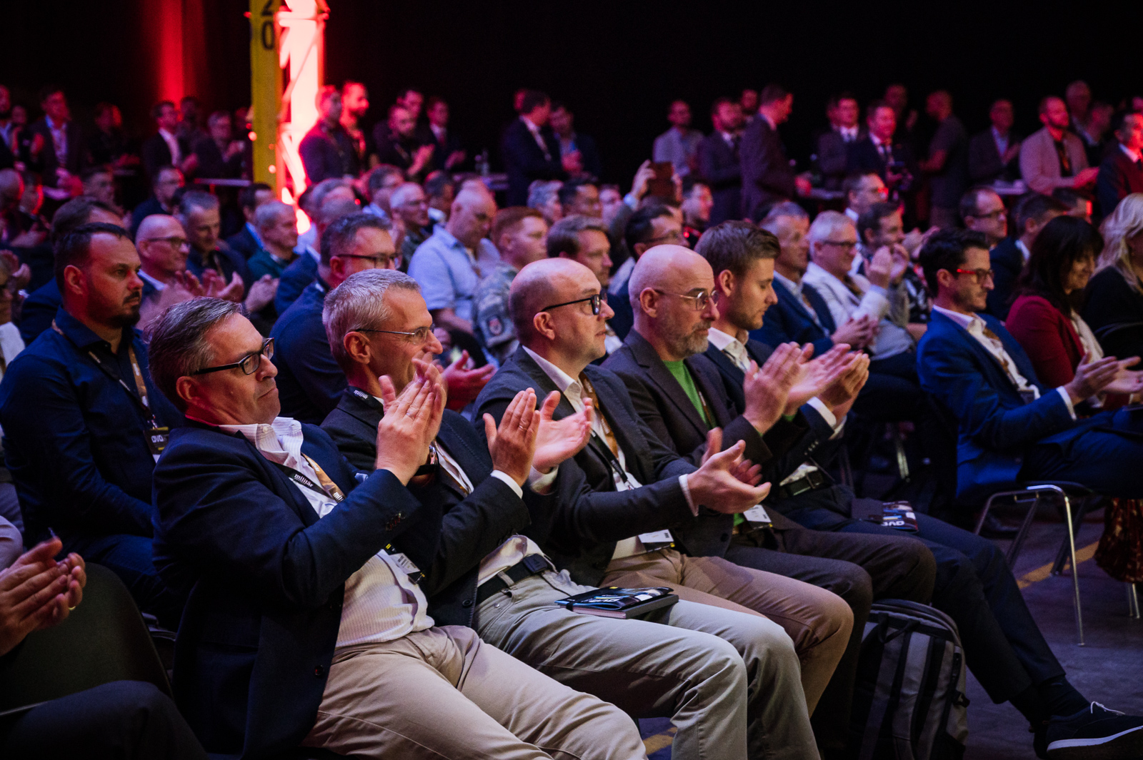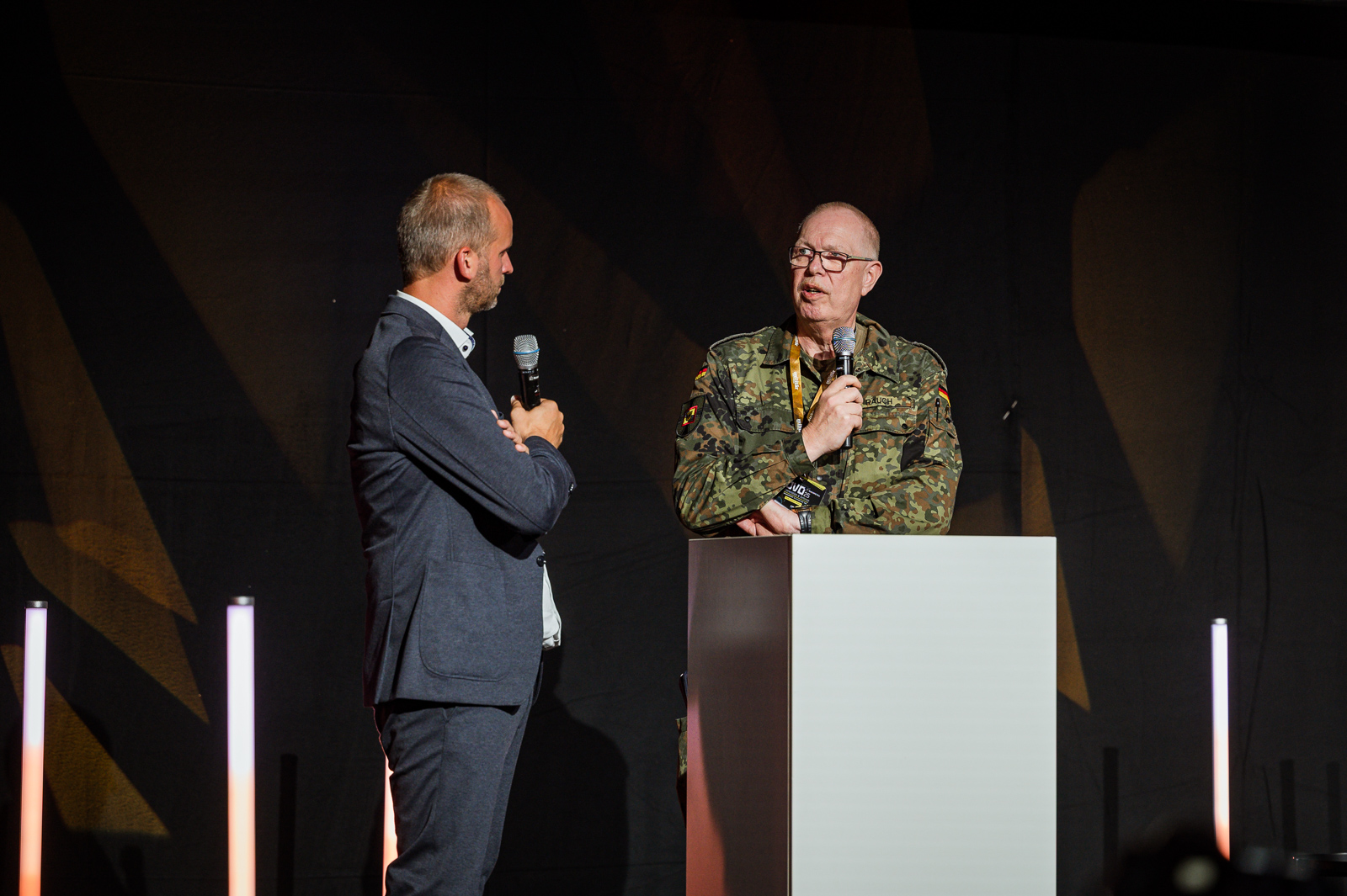 Although the networking evening was already open, the auditorium remained full when Jürgen Zacharias Lieutenant Colonel Rüdiger Rauch from the German Armed Forces onto the stage for a kind of fireside chat as the last item on the program. Rauch described the speed of current developments as a “dreadnought moment”, a complete transformation of the battlefield that encompasses air, land and sea in equal measure. He advocated a multi-layered approach to drone defense and warned against fighting cheap drones with overpriced missiles.