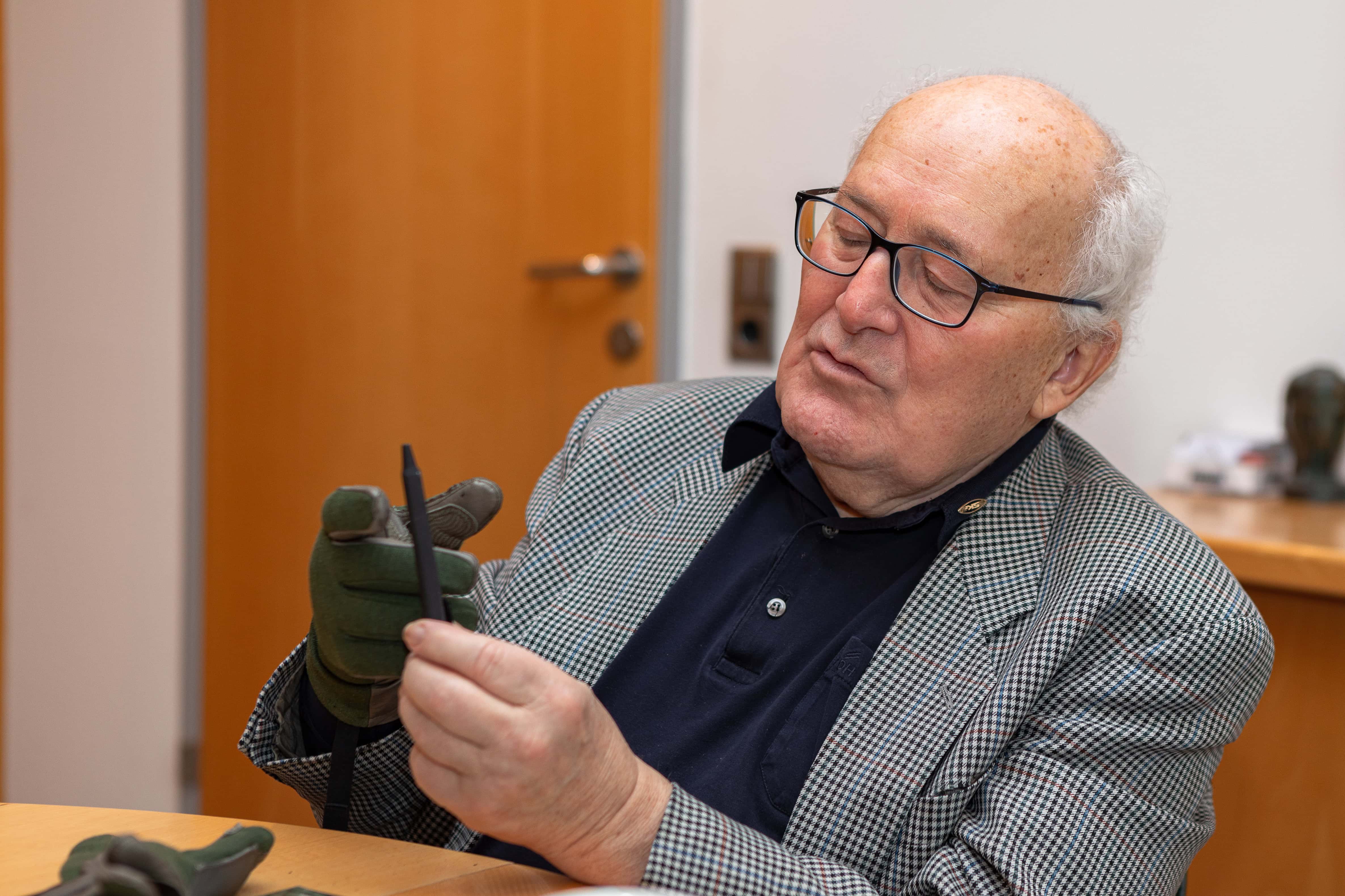 Paul Loos doesn’t know how many times he has put on gloves in his life. “Tens of thousands of times, I’m sure,” he says and smiles. “Maybe even more often.” Regardless, the senior boss of the Upper Austrian family business Eska, based in Thalheim near Wels, has no time for arithmetic games right now. The 78-year-old is just slipping his right hand into the “Tarius” sniper glove specially developed for the German army and begins to explain. No, rather to rave about it. About the precise fit, the fine stitching, the materials used (“the shell is made of a special knitted fabric with IR emission protection”), the digital leather donning aid and the perforated shooting finger with a movement fold and tightening device, which ensures a secure feel on the trigger and therefore perfect use of the weapon. “We’ve really achieved something great,” he says at one point and you can tell that the “Tarius” is much more than just a glove for him, it’s a matter close to his heart.