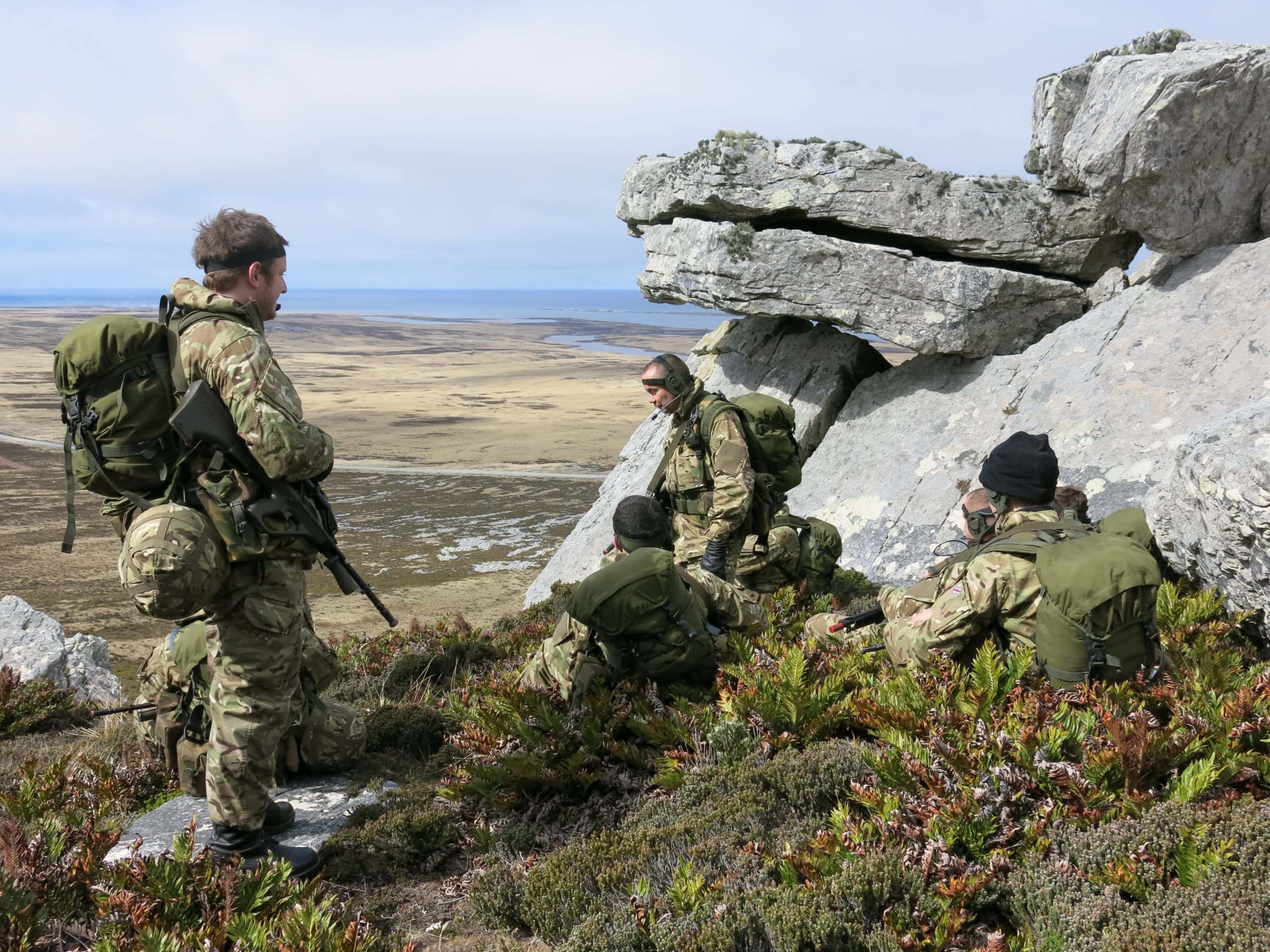 Terry Peck, a former member of the FIDF and one of the 1966 hostages, had provided valuable assistance to the British forces as a scout during the recapture of the islands. He fought with the3rd Battalion, Parachute Regiment, in the Battle of Mount Longdon. The FIDF was re-formed in 1983 and is now a light infantry company. Its members are residents of the Falkland Islands and their training lasts twelve weeks. After that, service consists of one day of duty per week, plus various additional weekends. 100 men belong to the Primary Reserve Personnel, another 100 to the Secondary Reserve Personnel. A Warrant Officer Class 2 of the Royal Marines serves as a Permanent Staff Instructor (PSI). The commanding officer since 2018 is Major Justin McPhee, who was the first FIDF officer to complete the Intermediate Command & Staff Course (Land Reserves) at the Defense Academy of the United Kingdom in 2019. The FIDF is an important part of the defense of the archipelago, to which the British Army (alongside the Royal Air Force and the Royal Navy) currently contributes: an infantry company, an engineer company, a telecommunications platoon and supporting sub-units in the field of logistics and administration. The costs for the FIDF of 400,000 pounds (around 460,000 euros) per year are borne by the Falkland Islands administration. In addition to typical British army weapons such as the GPMG (FN MAG) or the L129A1 Sharpshooter Rifle, the FIDF also uses weapons from Austrian arms manufacturers – the Steyr M9 pistol and the Steyr AUG from manufacturer Steyr Mannlicher.