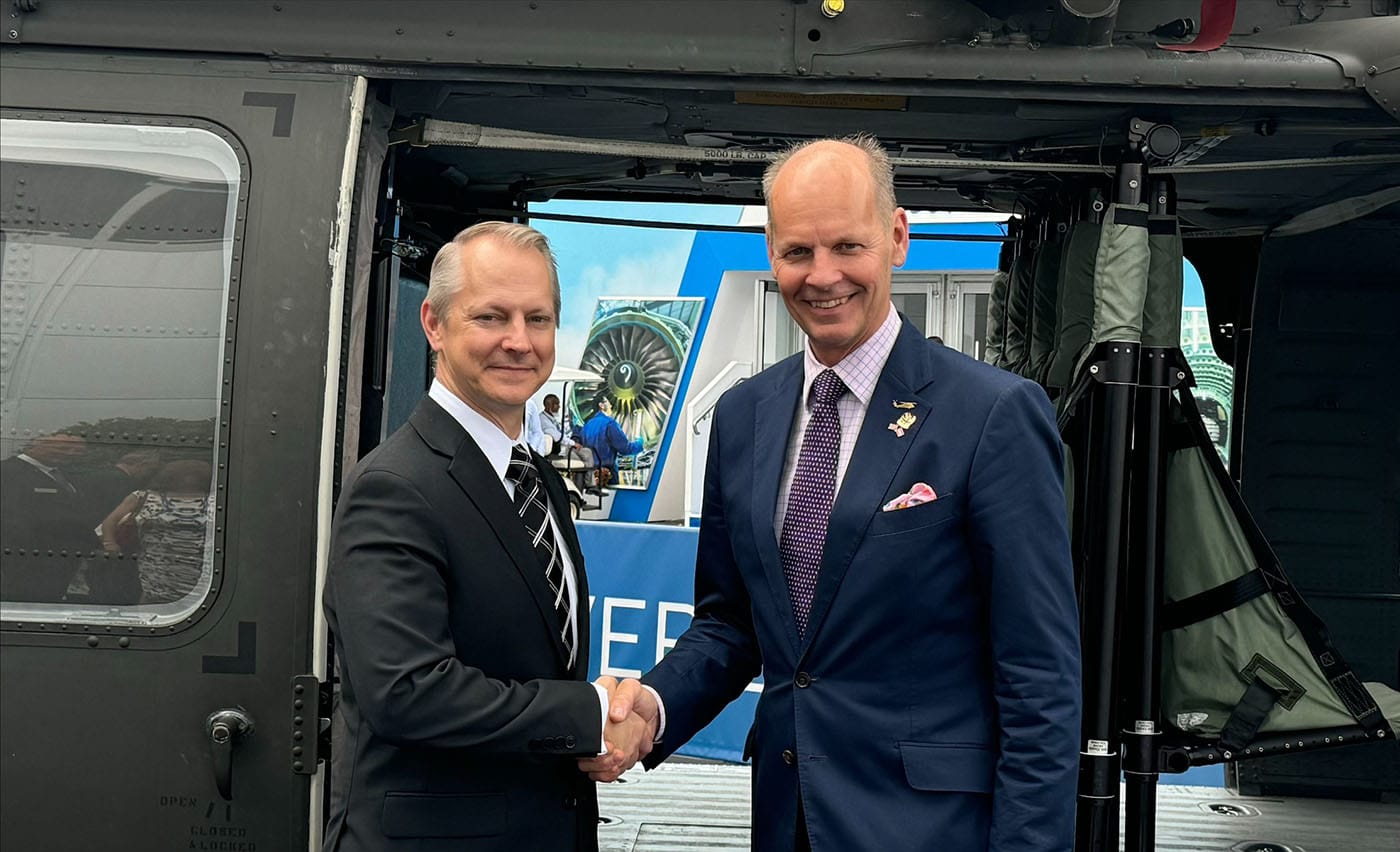 At the end of June, the the offer of the US Defense Security Cooperation Agency (DSCA) to purchase twelve UH-60M Black Hawk from manufacturer Sikorsky was accepted. At the Farnborough International Airshow, Austria’s Armaments Director Major General Harald Vodosek paid a visit to Vice President and General Manager Richard Benton at the Sikorsky stand.
