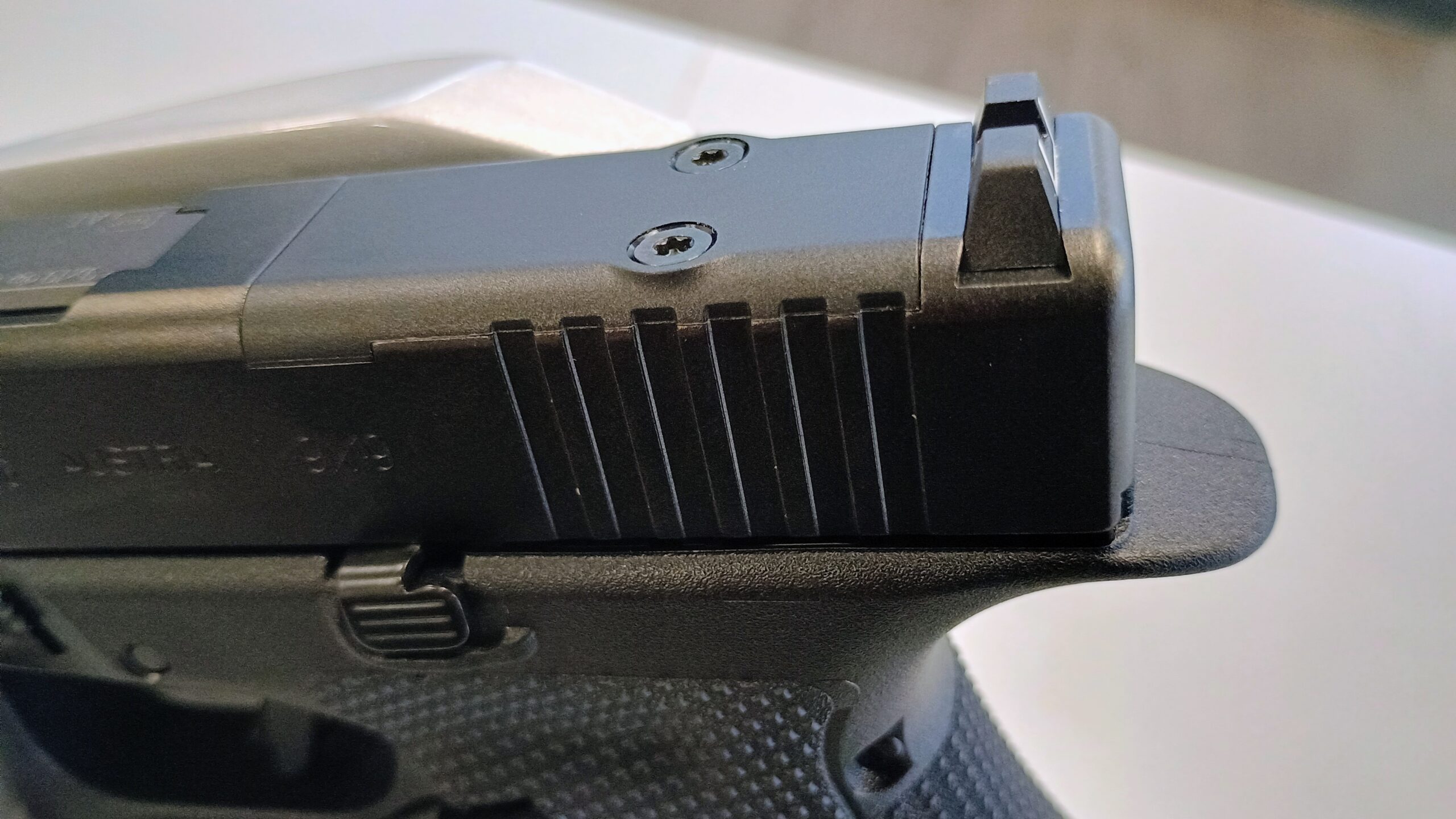 The red dots were relatively low and also make it easier for shooters who are trained on steel sights to start shooting with the bright red (or green) sights. That, too: successful. The trigger has a solid pressure point. The angular shape is also a definite advantage. If you take a closer look, you will notice that the gun is calmer. Everything is straighter and more focused.