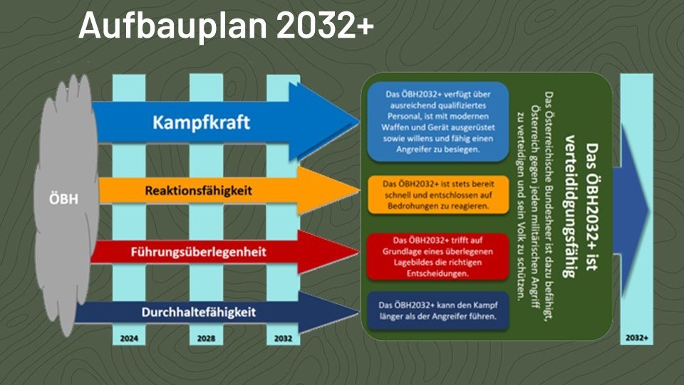 The necessary realignment of the Austrian Armed Forces has triggered extensive strategic military planning, which has now led to the first important results in the form of the “Aufbauplan ÖBH2032+” and the “Zielbild ÖBH2032”.