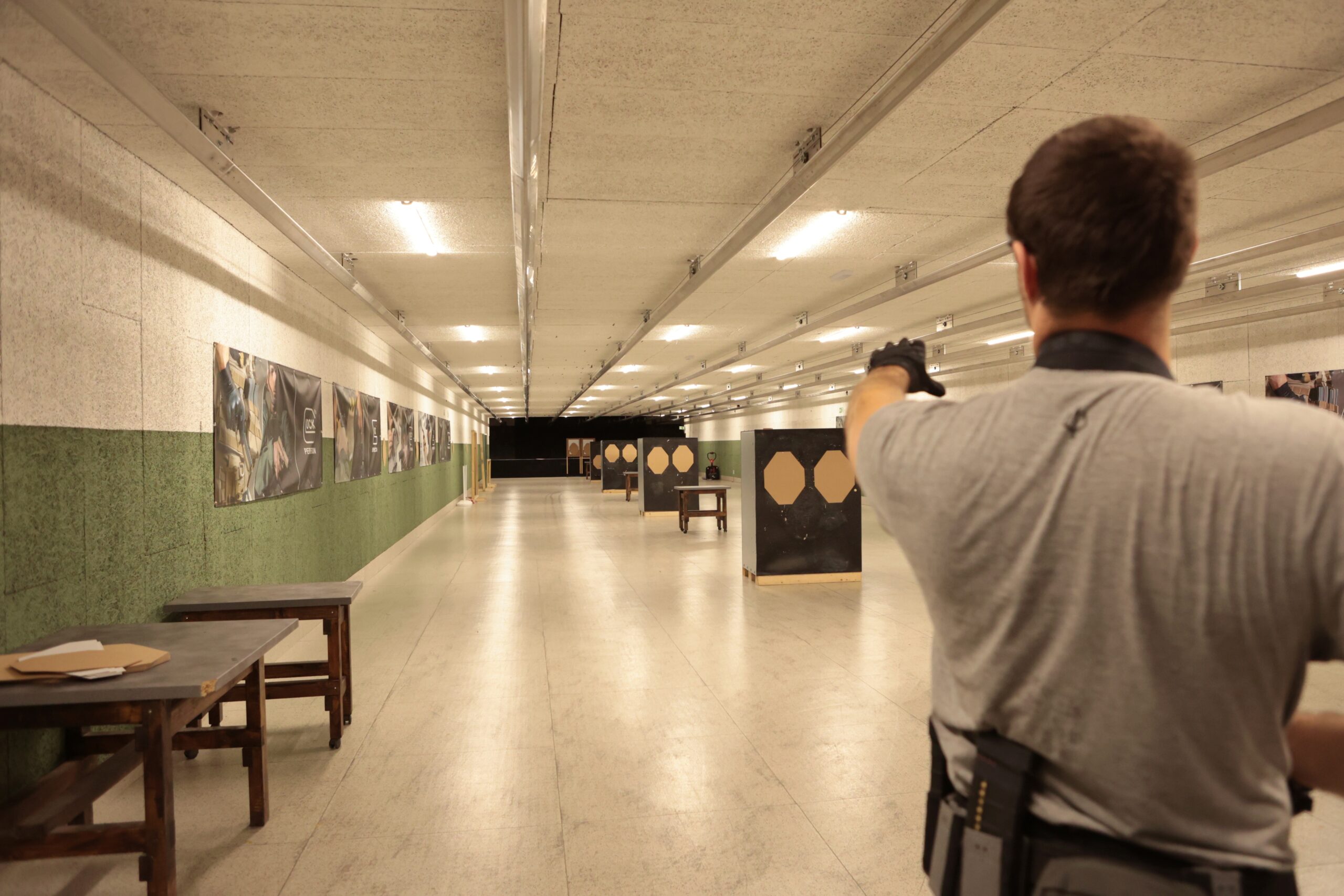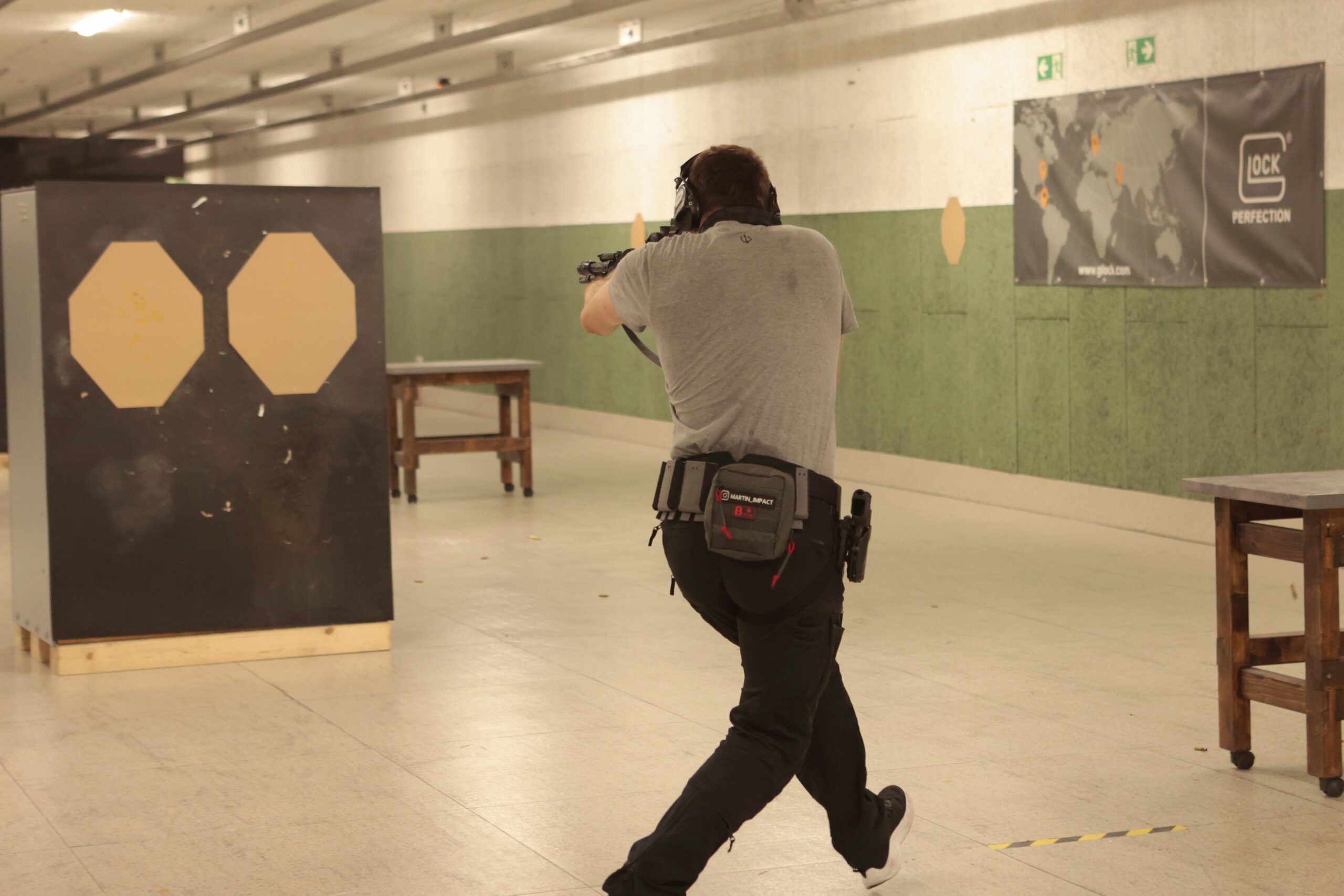 Martin sets – as always skillfully and clearly communicated – the goals for shooting in and out of motion. This includes, for example: Holding the gun as still as possible and finding the point in walking and running where there is the least movement in the upper body and in the gun. Is this while both feet are on the ground or in between? In the course, we learn the differences literally step by step.