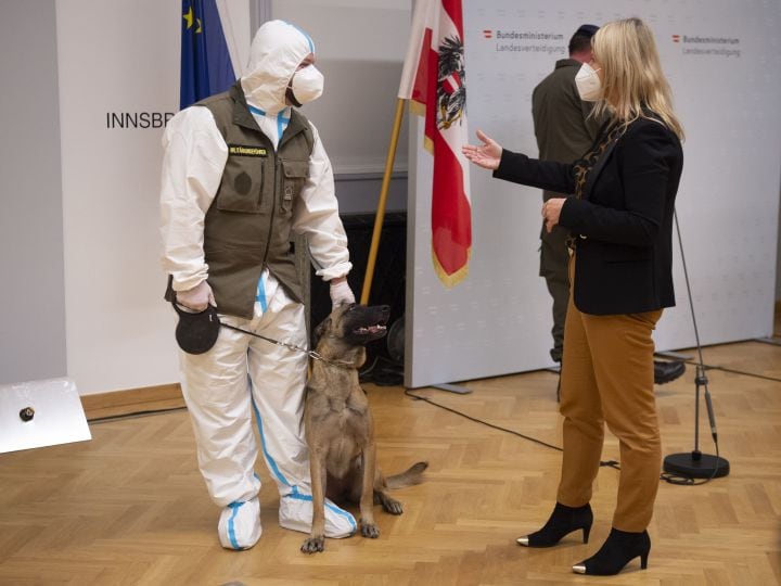 An interim report in collaboration with the military dog center and the researcher has now confirmed that sniffer dogs can sniff out the coronavirus using mouth-nose protection masks. The basic training of the first Covid military dog took a total of six months. The dog’s first test phase is now moving on to a practical trial phase. Another military dog of the Rottweiler breed is also currently in the first phase of training. Two more dogs are to follow by 2021. During the event, Defense Minister Klaudia Tanner referred to the diverse tasks and achievements of the Armed Forces: “In times of the corona crisis, our soldiers and civilian employees of the Armed Forces prove through their daily actions that they are an indispensable part of our society: From disaster relief, as is currently necessary with the masses of snow, border protection in security police assistance operations, embassy guarding or mass testing – the Armed Forces are proving how flexible, diverse and professional they are. In addition to the numerous tasks performed by the Armed Forces, our soldiers are also involved in current research, as currently demonstrated by the Military Dog Center for Covid-19 detection dog training. Here, we are drawing on the expertise of the dog handlers and the skills of our four-legged personnel in order to be able to detect the coronavirus quickly and efficiently in the future. I am very proud that we can rely on the expertise of our Armed Forces even in difficult times.”