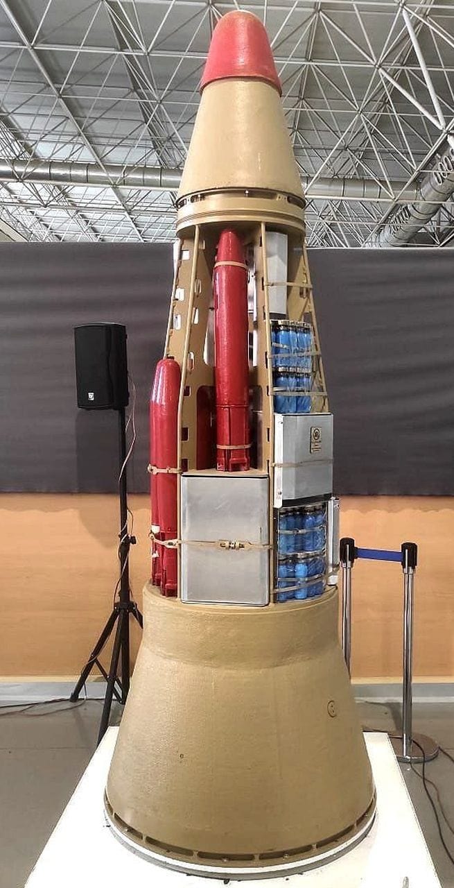 Two ballistic missiles are believed to have already exploded in Iran, one directly during the launch in al-Momenin and another shortly after the launch over Kermanshah. A third missile crashed in Iraq, another was fired over Jordan (the wreckage crashed in Amman), the others are likely to have functioned as planned. Since some missiles had multiple warheads (or multiple re-entry-vehicles, MIRV) (see also picture on the right), and many missiles are now also equipped with decoys, the Israeli armed forces and their allies had to detect and engage more targets than were actually in the air. As a result, during the first wave of the Iranian ballistic missile attack, the operational defensive missiles appear to have run out and some batteries could not be reloaded in time before the second and third waves – in line with the intended oversaturation.