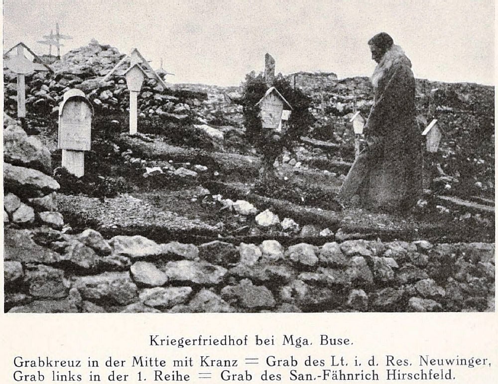 The last verse of the Kaiserjägermarsch became the fate of Lieutenant Neuwinger: “Even if some fall down, the bullet burns in his heart: he dies as an Kaiserjäger from the first regiment!” Lieutenant Neuwinger fell just a few months before his 22nd birthday. The bold Kaiserjäger was posthumously awarded the “Signum Laudis – For Brave Conduct before the Enemy” medal and the “Cross of Military Merit 3rd Class with War Decoration” – even the prestigious “Prager Tagblatt”the largest liberal-democratic German-language daily newspaper in Bohemia, reported on this – and initially buried in a local military cemetery.