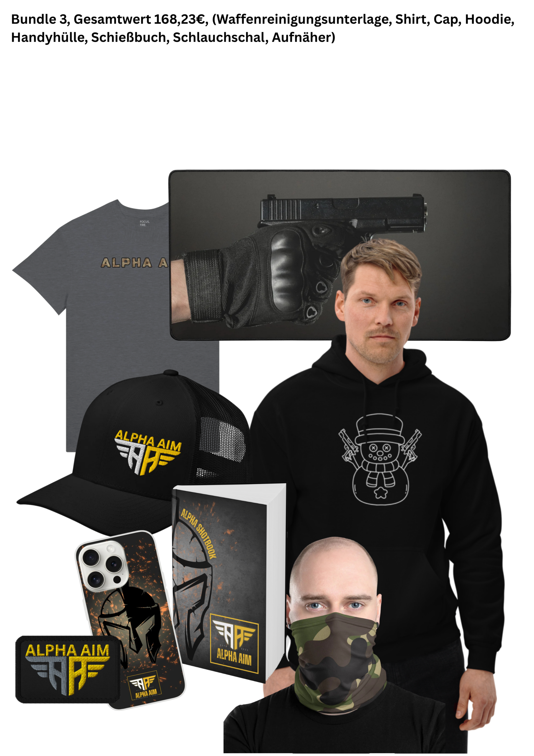 It all began at Alpha Aim with the development of a sophisticated shooting book to document training sessions and competitions. Soon, street and range wear as well as other equipment for everyday life and the shooting range were added. There is now something for everyone: athletes, sports shooters, style-conscious tacticians and all those who like to make strong statements.
