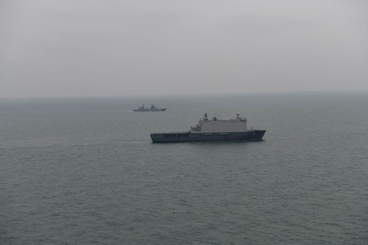 The group of ships passed through the Dutch Exclusive Economic Zone (EEZ) before being sent to other NATO-partners. For the escort, the Dutch Navy deployed the “Zr.Ms. Johan de Witt” and the NH90 maritime helicopter for the escort.