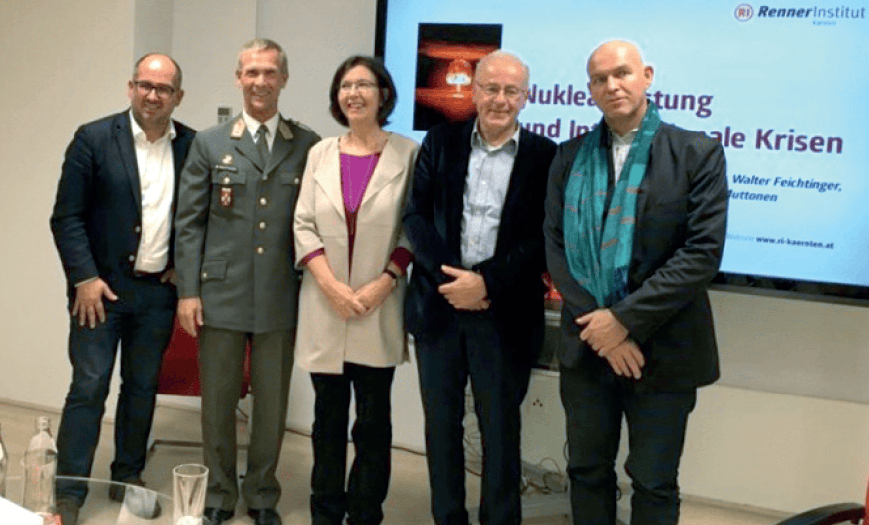 An exciting discussion group gathered in Klagenfurt on October 24. Christine Muttonen, Heinz Gärtner, Thomas Seifert and Brigadier Walter Feichtinger from the Institute for Peacekeeping and Conflict Management debated nuclear armament and international crises at the Renner Institute Carinthia. There was no end to the questions from the audience. After two and a half hours, host and moderator Harald Koller regretfully brought the event to a close.