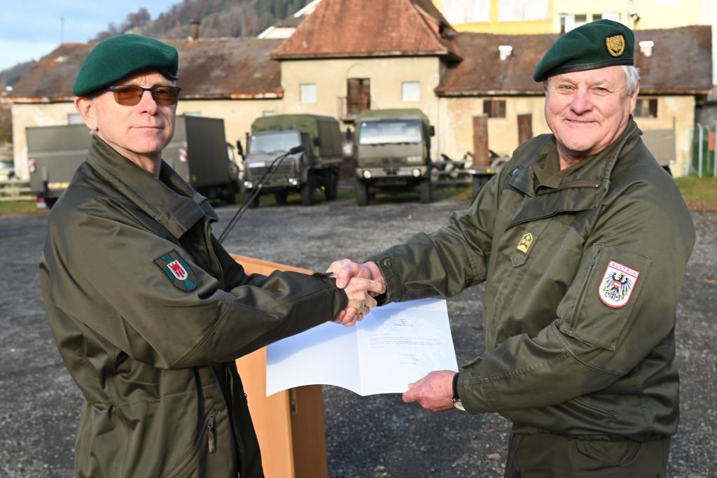 Colonel Kunibert Gasser was given special thanks and recognition when he completed his compulsory military service as an officer in the militia. He had entered militia officer training in 1976 and made a career in various functions in the Vorarlberg militia force. He acquired special qualifications through his numerous deployments abroad – including in Afghanistan, Western Sahara, Israel and Bosnia and Herzegovina.