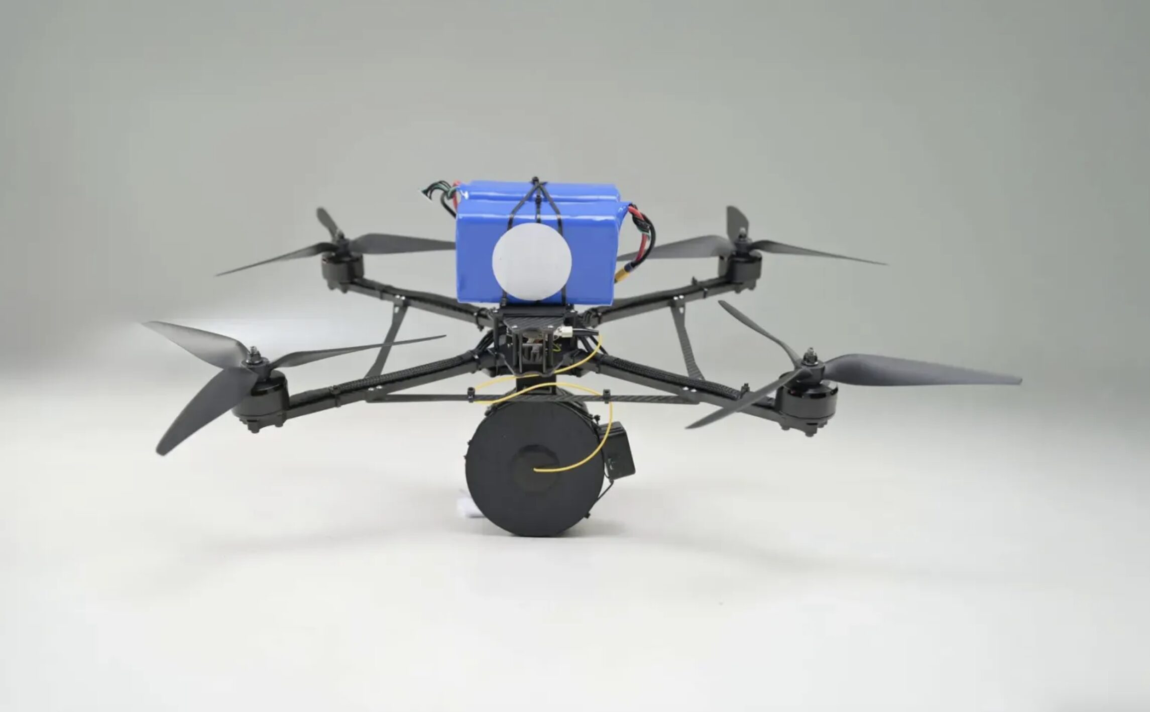 The fiber optic-controlled drone was developed by a Ukrainian company based on the combat experience of Ukrainian soldiers. Equipped with a robust, lightweight frame, powerful batteries and efficient brushless motors, the Ronni-13 is capable of transporting combat-specific payloads over long distances to enemy targets.