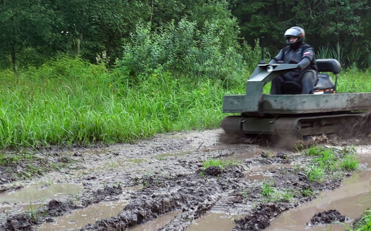 The vehicle, called Omsk-2, was developed in Omsk with the support of the so-called Kulibin Clubs of the Popular Front. Omsk-2 weighs 650 kilograms and can carry 350 to 500 kilograms of freight or up to four people. The tracked vehicle is capable of towing a trailer weighing over a ton as well as towing cars and minibuses.
