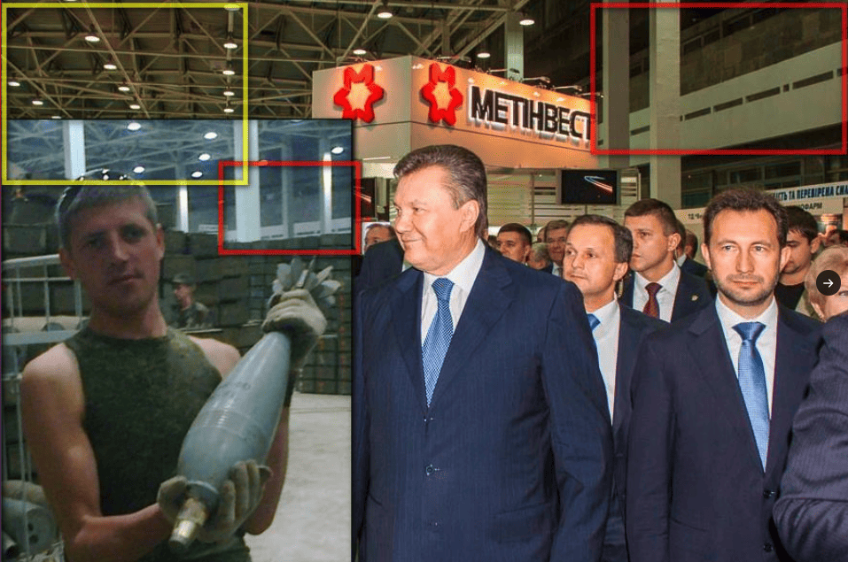 As early as 2015 and 2016, the OSCE Special Monitoring Mission to Ukraine was informed that the ExpoDonbas building, in the middle of the city of Donetsk and barely 500 meters from the Donbass Arena, the home stadium of the well-known soccer club Shakhtar Donetsk, which opened in 2009, was being used as a warehouse for military equipment and ammunition. The photo evidence is provided by a “selfie” of a young man who is apparently busy storing ammunition in the ExpoDonbas hall. Shortly afterwards, the hall was destroyed by Ukrainian artillery fire according to a photo comparison (see marked areas on the picture). The musicians’ quarters