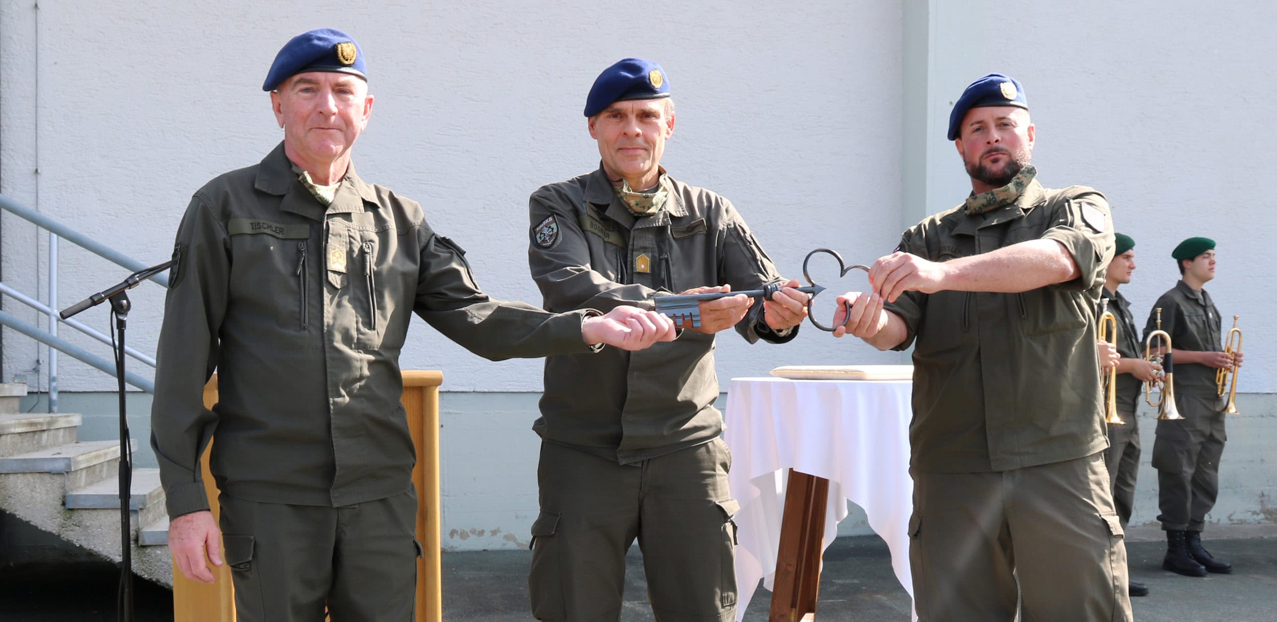 A change of leadership took place at the St. Johann i.T. Army Logistics Center on 1 October. Due to the strict requirements for holding military events in the Covid situation, the ceremony was reduced to the essentials without the public. The Deputy Commander of the Armed Forces Base, Brigadier Siegfried Bognar, relieved Colonel Hermann Tischler of command and symbolically handed over leadership responsibility for the Army Logistics Center to Major Thomas Preissler in the form of a key.