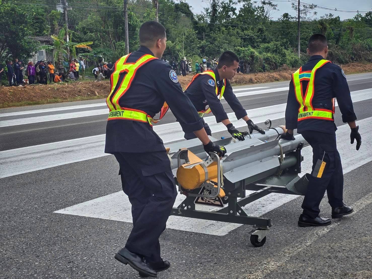 For this premiere test, after extensive inspections and evaluations by technical experts, the Air Force and the Highway Department, the Air Force command decided on a section of Highway 4287 in Hat Yai district, Songkhla province.