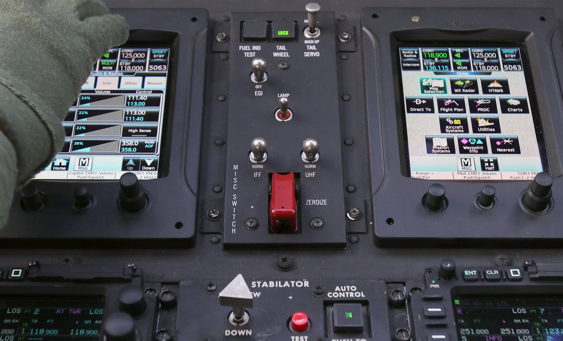 nochmals zweimal hinter den Pilotensitzen für die restliche Besatzung. Ganz unten auf der Mittelkonsole, die beiden Portale