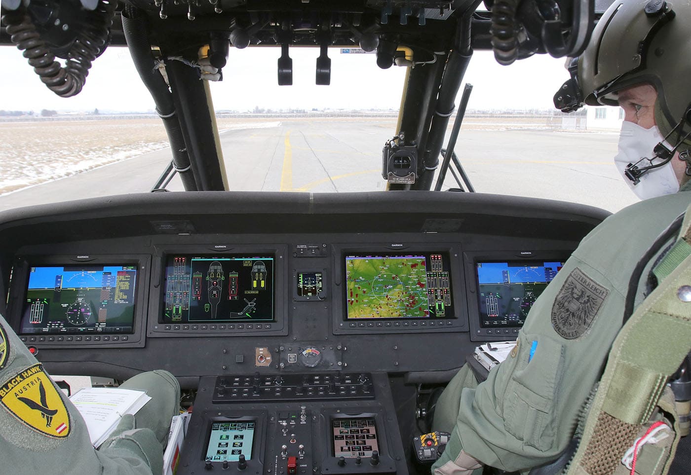 On February 12, Militär Aktuell had the exclusive opportunity to take a first look at the new cockpit of the Austrian S-70A42 Black Hawk and the working environment with the new VL-60 Ace Deck from Ace Aeronautics LLC. At the beginning of the awarding process, there had been fierce protests and even reports against the “experiment” with the small company from Guntersville AL. This included scattered rumors about our prototype (and it still is) 6M BC being transferred to an allegedly Covid-related bankruptcy estate of Ace. The primary flight displays are on the outside of the instrument panel, while the MFD displays are on the inside. For example, technical data (e.g. on the engine) or various map formats can be shown in smaller or larger sizes on all displays. Brilliance and brightness adapt to the sun, and at the touch of a button everything becomes suitable for night vision goggles. Above the center console are the two communication displays (with TETRA, CONRAD, ATC, MIL HF, …), which are also available in a simpler form twice more behind the pilot’s seats for the rest of the crew. At the bottom of the center console, the two portals for the mission computers mentioned in the text. Regardless of these disruptive fires, the cockpit is now running and consists of two main groups. The Garminn 5000H is a civil-certified avionics system that meets all national and international requirements for a modern helicopter. This means that the avionics system is state of the art and the helicopter can be operated in airspace under visual and instrument flight conditions day and night without restriction. To ensure that the military capabilities and other requirements continue to be available, the manufacturer has installed a second system, which was manufactured and integrated by the subcontractor Avalex. At its heart are the two Avalex AMP3311 mission computers. These capabilities are controlled via the Avalex “Cockpit Management Unit” ACM9454. This tactical system runs autonomously and does not interfere with the Garmin software. The data is only supplied to the MFD and the communication system via a video and audio interface. The mission system is integrated in the HS and functions satisfactorily. The aircraft flies with it several times a day and the personnel are trained accordingly. The squadron in Langenlebarn has a static cockpit trainer for this purpose, and the hangar has an impressive programming console (Software Implementation Lab). Boxes with the equipment for further aircraft are already on site, but they are considering sending the next two Black Hawks back to Alabama anyway. The background to this is the delay since 2019 caused by the Trump-Bugdet shutdown and the FAA approval tightening after 737MAX as well as the pandemic. Corona has temporarily paralyzed both ACE and suppliers, and for a long time our managers around Colonel Reinhard Zmug and Colonel Herbert Santner (1st Squadron) were unable to make any business trips to the USA.