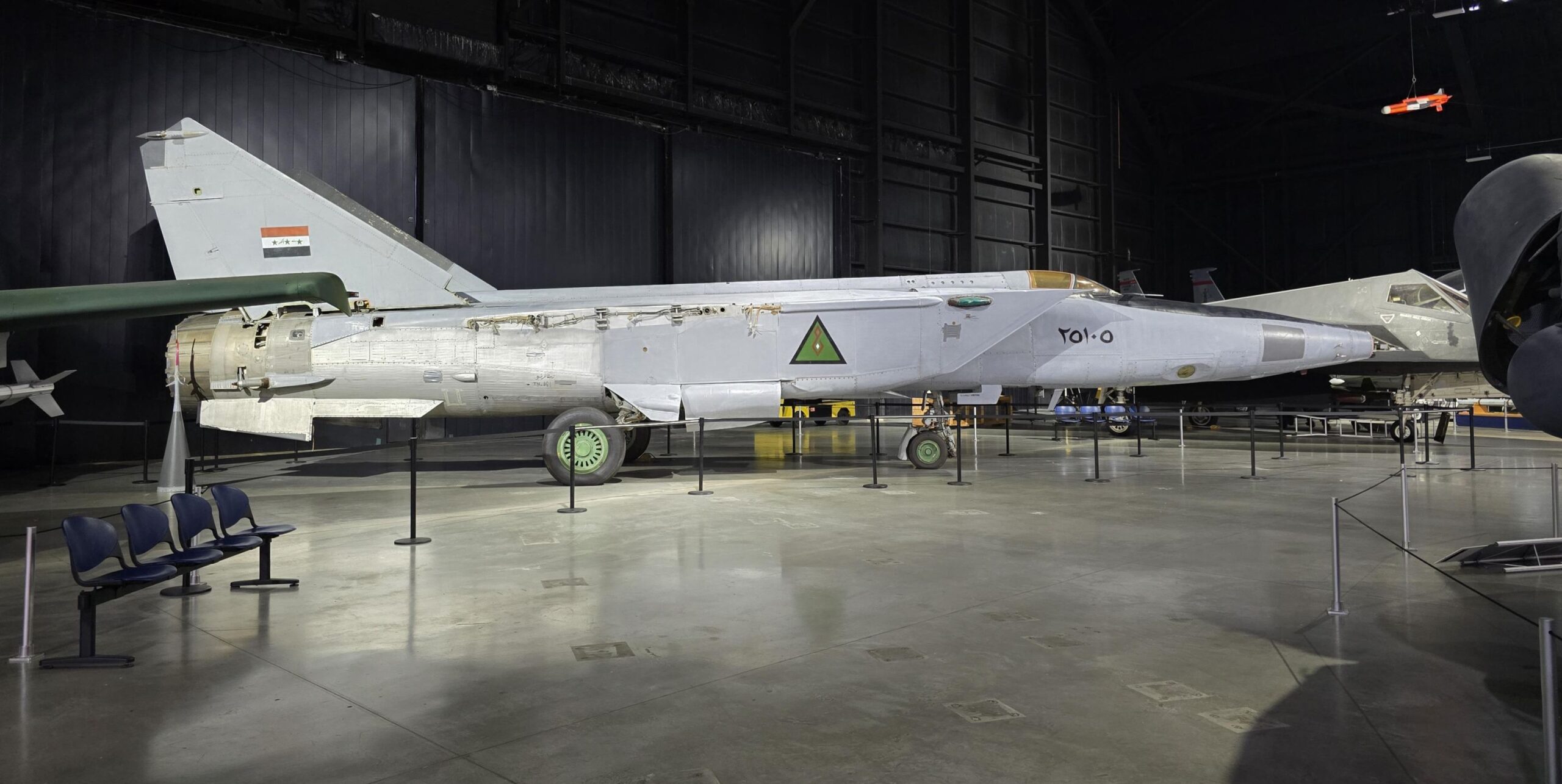 There, the Foxbat is located in a prominent neighborhood: not far from the F-117 Nighthawk (first mission Panama, December 20, 1989), flanked by Su-27, MiG-29, A-10, F-15C, Tornado and other icons of that era. The MiG-25 still holds a special record to this day: 37,560 meters altitude in 1977 – a value still unattained today for a manned jet aircraft.