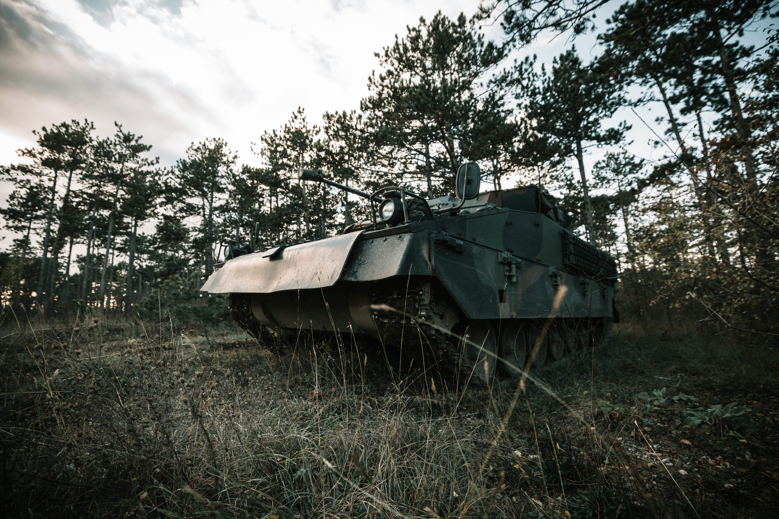 The commander sits on the turret on the left in the direction of travel, with the gunner on the right. When the hatch is closed, they have a 360-degree view of the surroundings using a thermal imaging device and angled mirror.