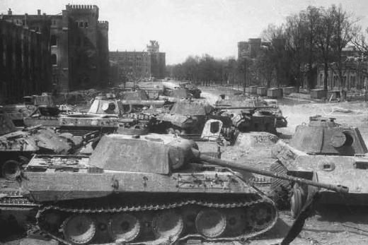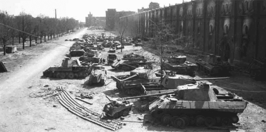 By the way, in the picture above you can see a Panzer-V Panther behind the Russian Sherman tank. Such tanks were used after the last battles in Hungary (see book tip), the Panzer Regiment 11 of the 6th Panzer Division took over such tanks in Vienna in March 1945 – presumably from vehicles repaired in the arsenal (see picture gallery above) – and fought with an initial 68 units from Vienna (most recently Engelsplatz) to the end in the Brno area. According to various war diaries, the crews are said not to have coped so well with the tricky “Panthers” on the transmission side (see also picture gallery above) because they were used to Panzer IVs and only underwent a rudimentary training phase. In addition to combat losses, there were also a number of failures due to driving errors.